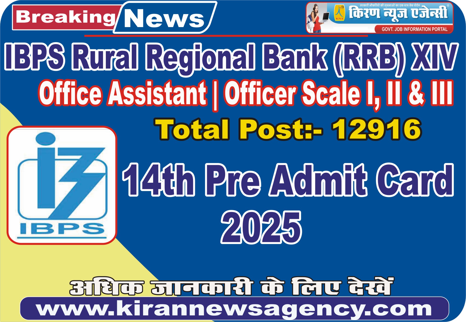 IBPS Gramin Bank RRB 14th Pre Admit Card 2025 for 12916 Post