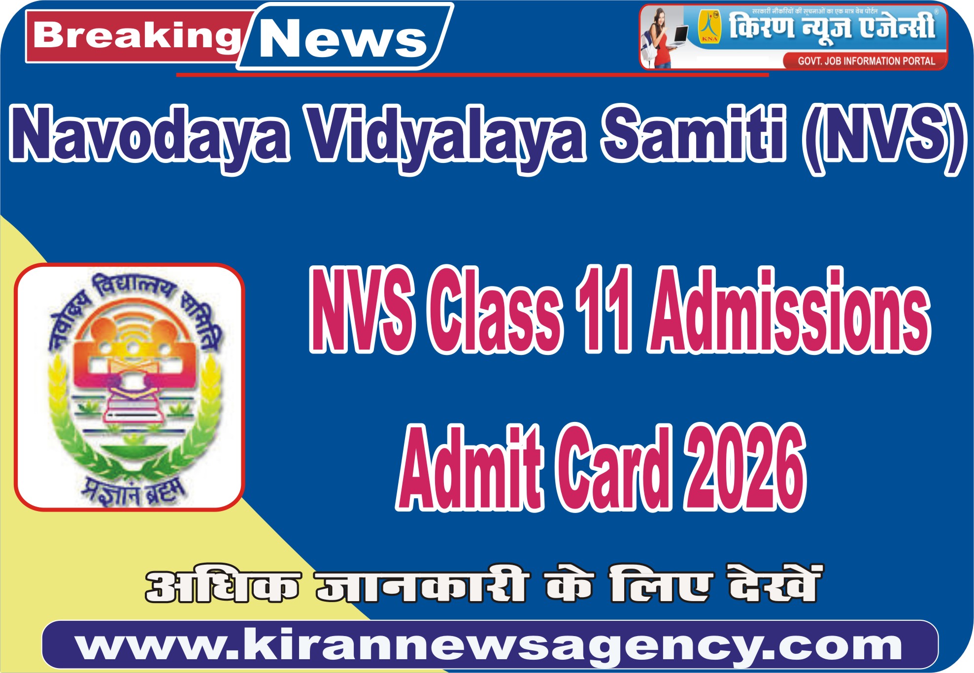 NVS Class 11 Admission Admit Card 2026 |