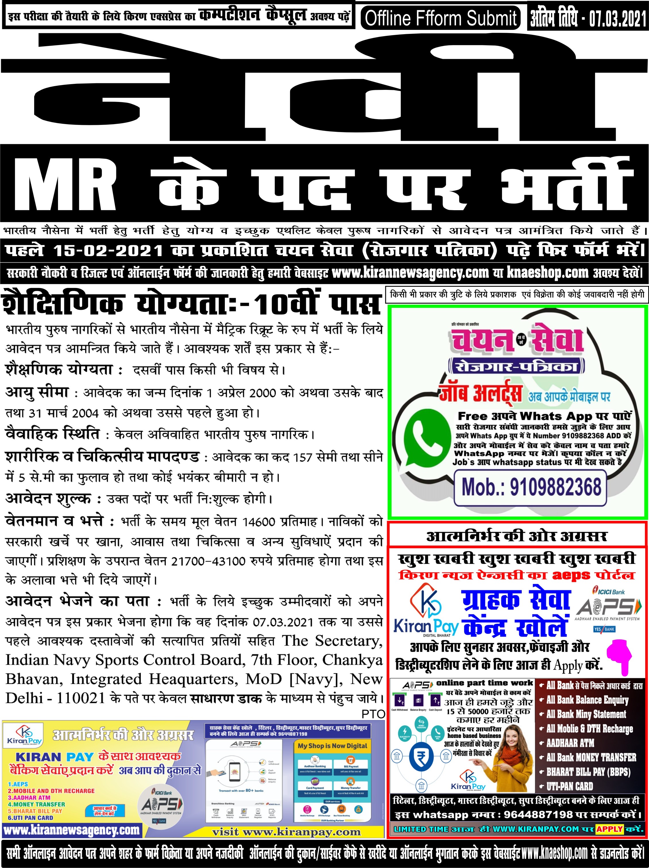 Last Date for Off Online : 07/03/2021