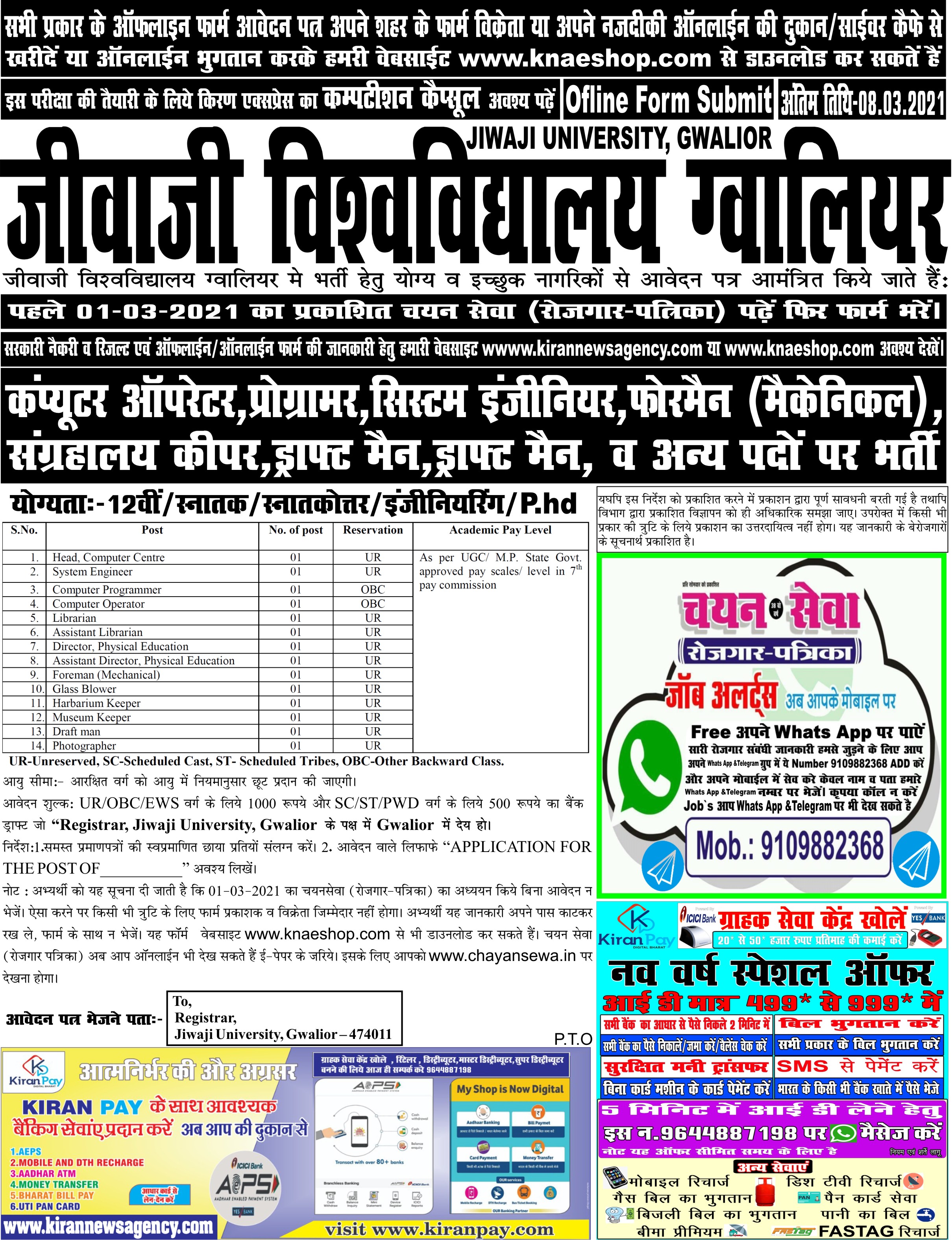 Last Date for Off Online : 08/03/2021