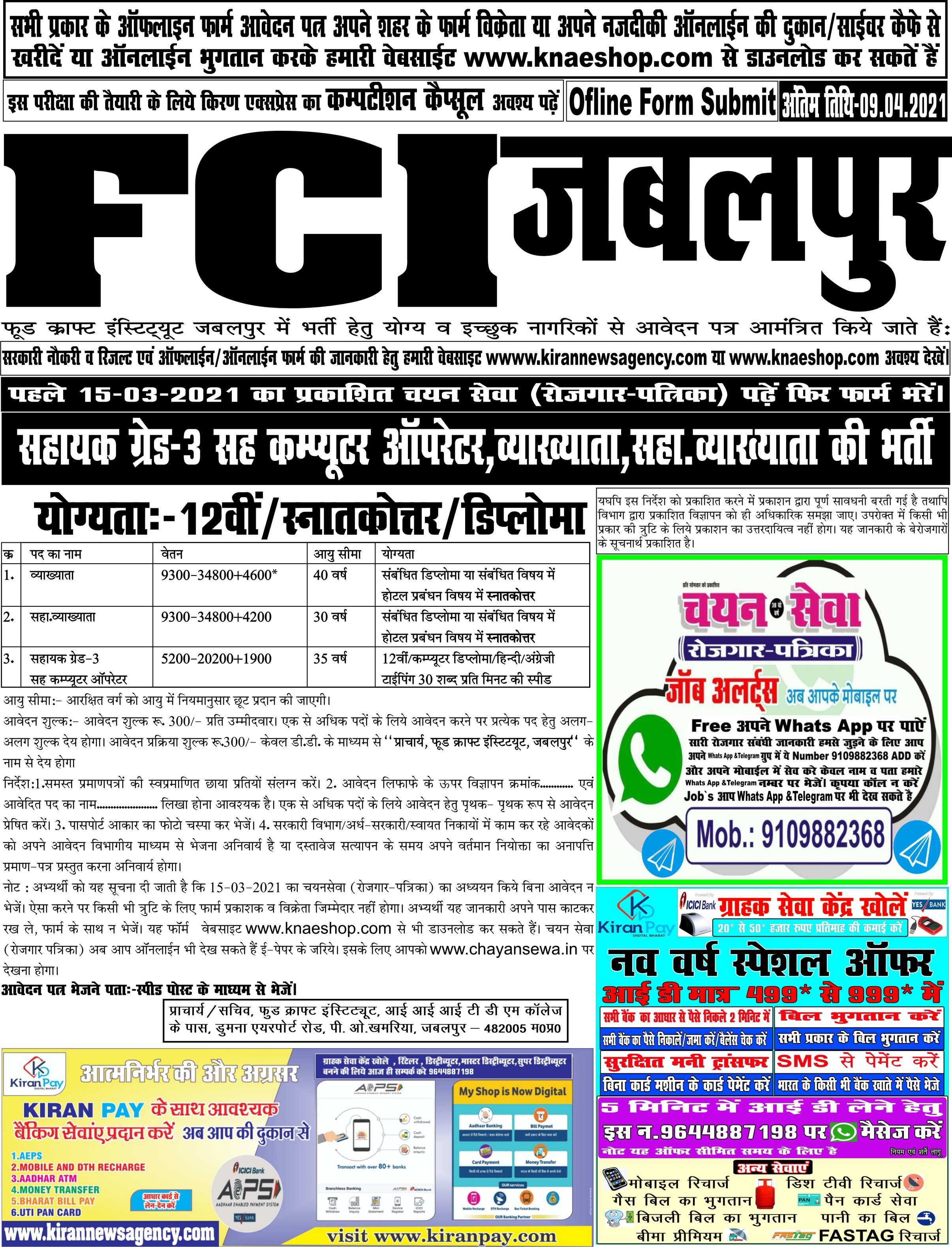 Last Date for Off Online : 09/04/2021