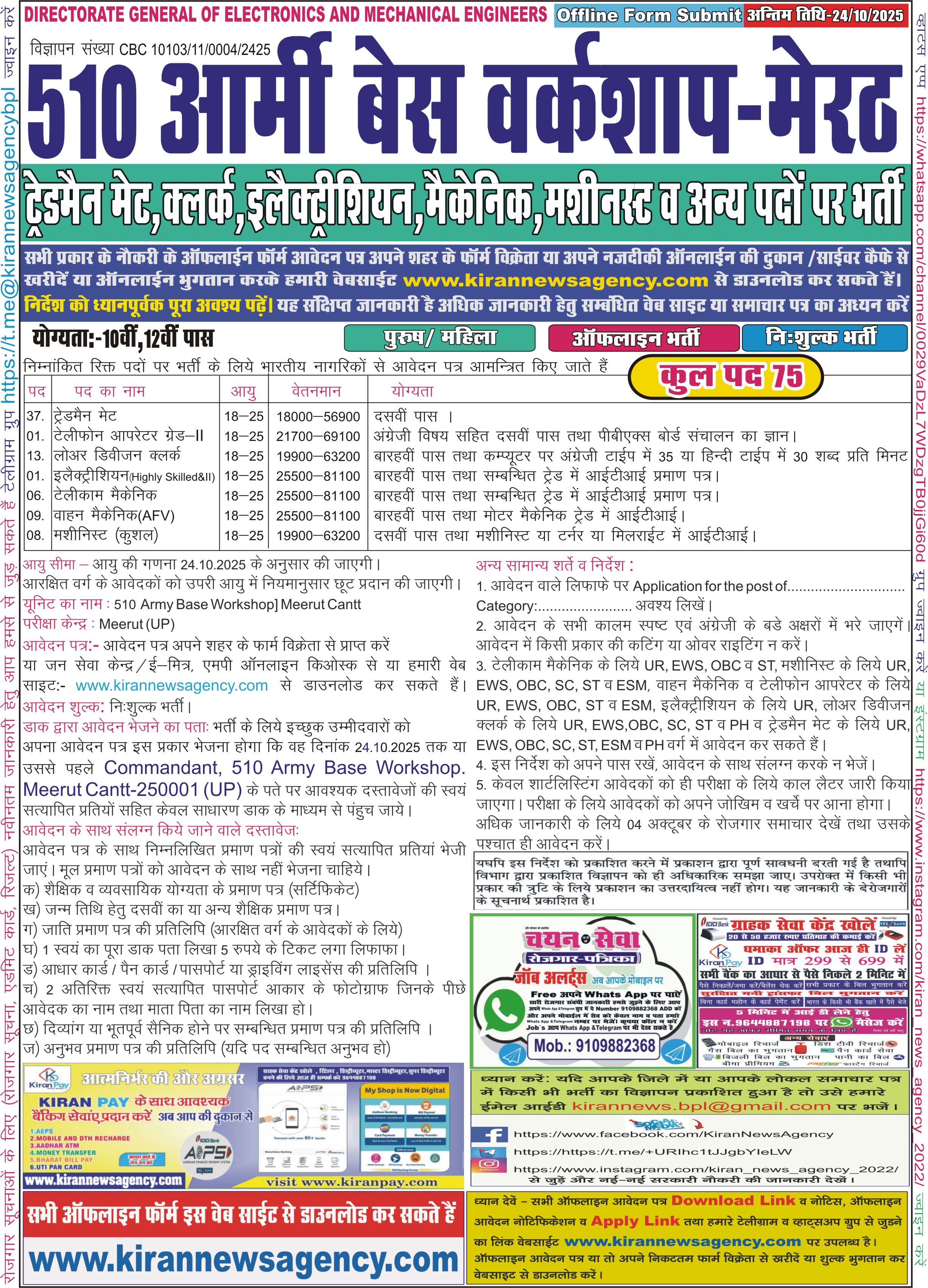 Recruitment :- Trademan Mate, LDC, Telephone Operator, Electrician, Vehicle Mechanic, Telecom Mechanic, Mechanist