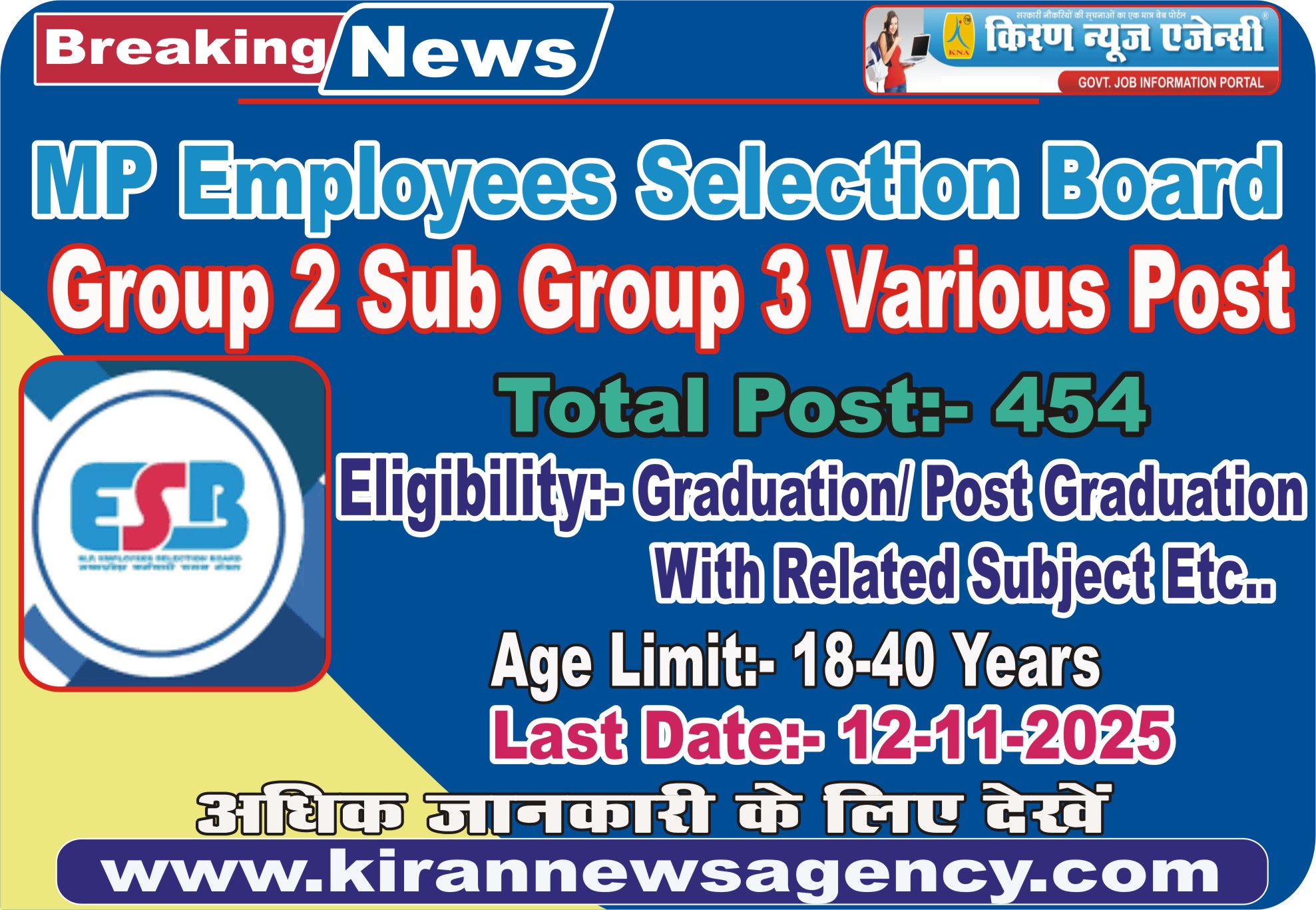 MPESB Group 2 Sub Group 3 Recruitment 2025 : Vacancy Details