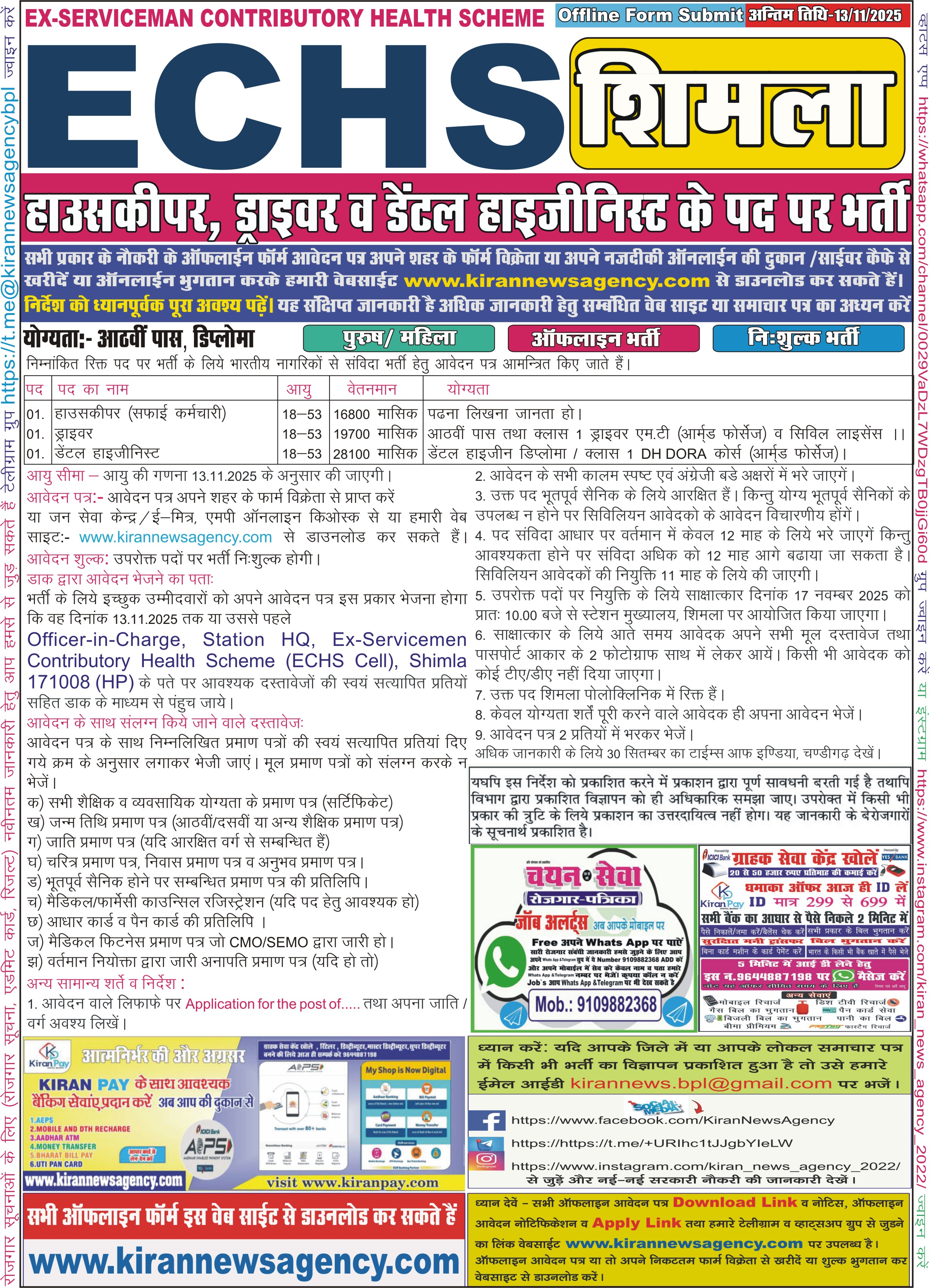 Recruitment :- Housekeeper, Driver, Dental Hygieniest