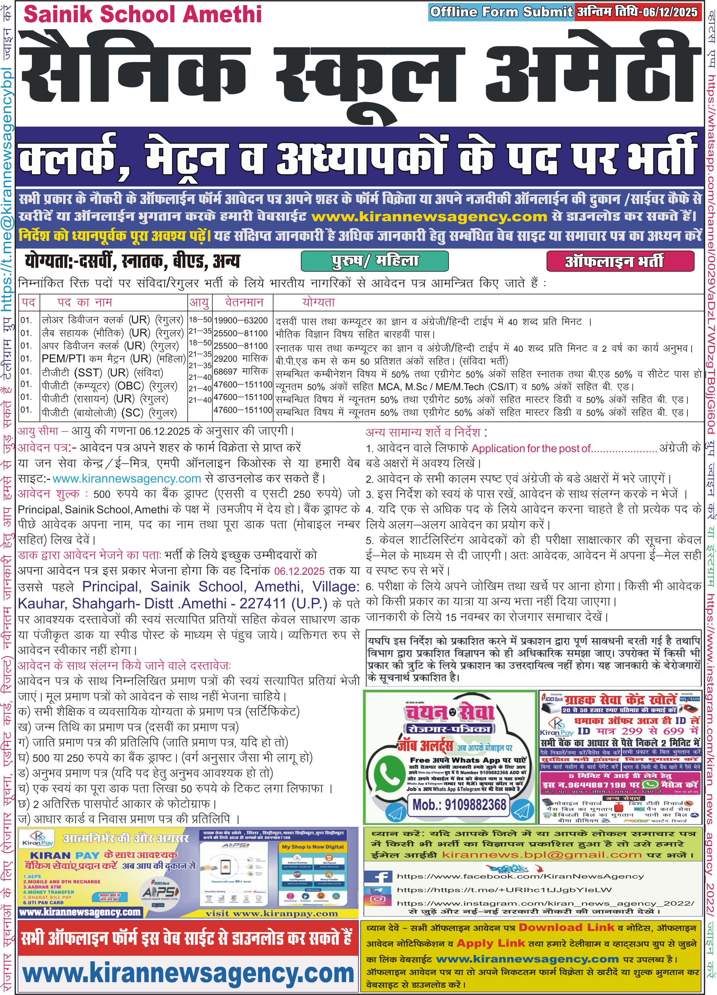 Recruitment :- LDC, UDC, Lab Assistant, PEM/PTI cum Metron, TGT, PGT Teacher
