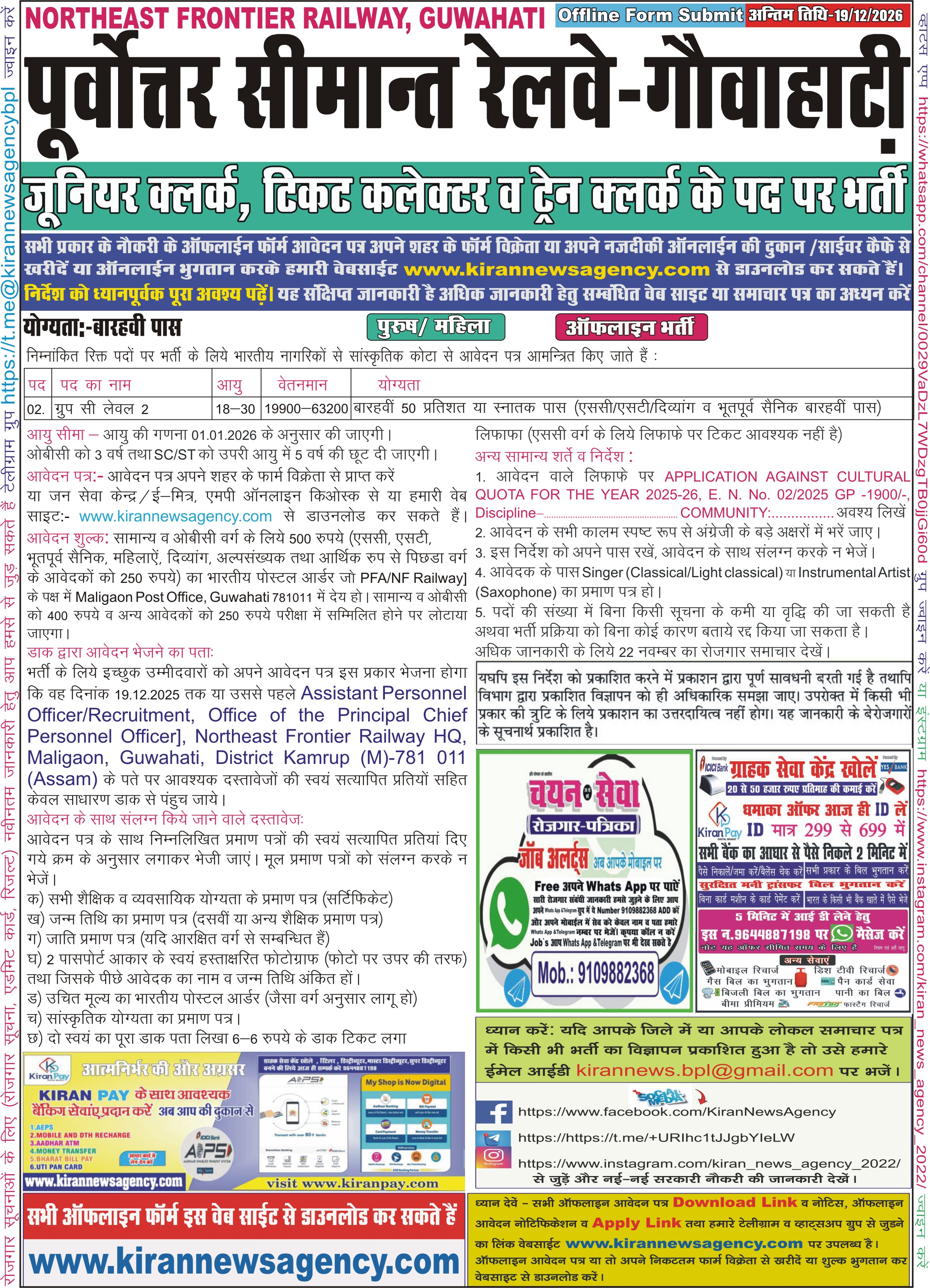 Last Date for Off Online : 19/12/2026