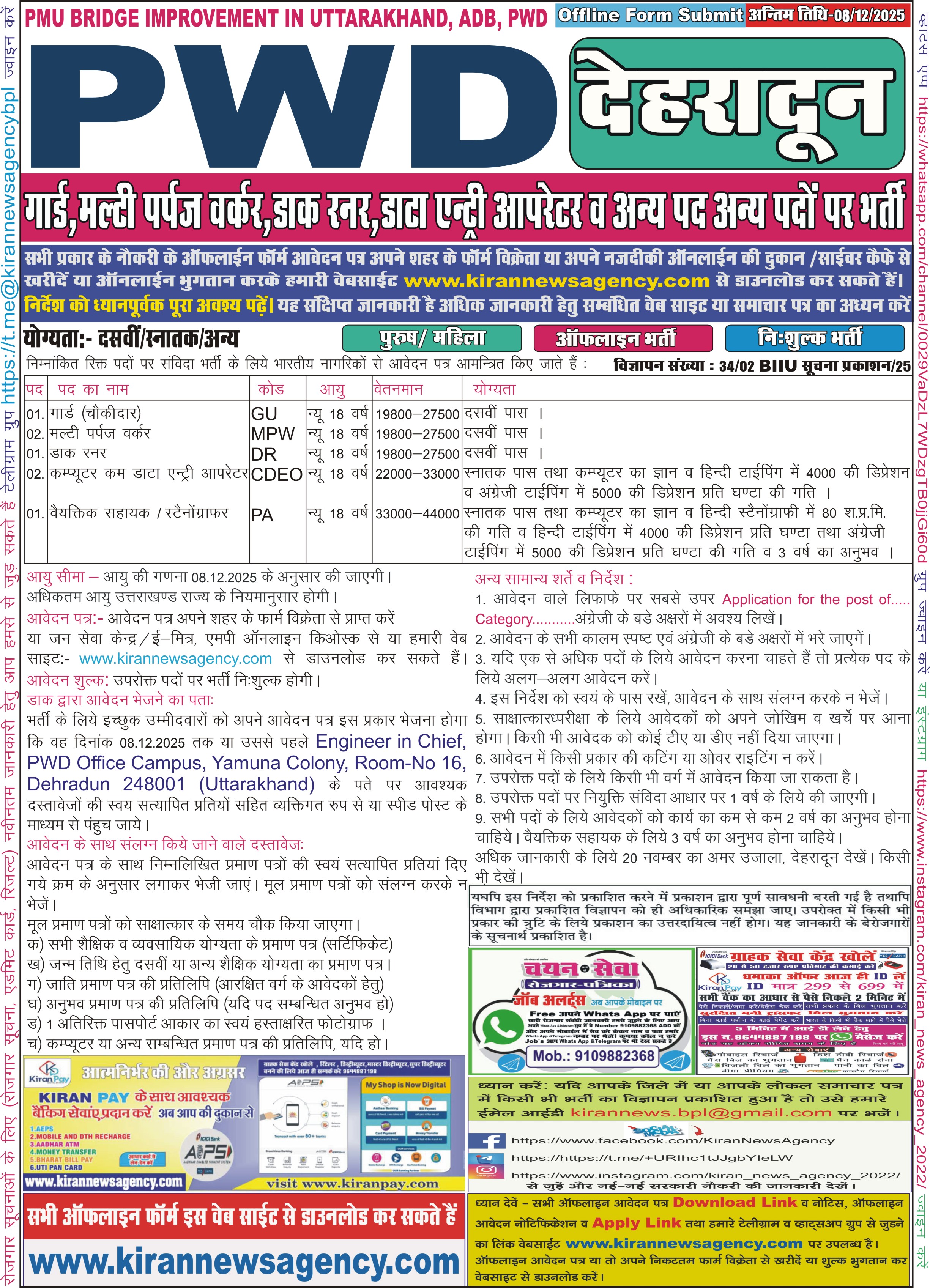 Recruitment :- Guard, Multi Purpose Worker, Dak Runer, Data Entry Operator, Personnel Assistant