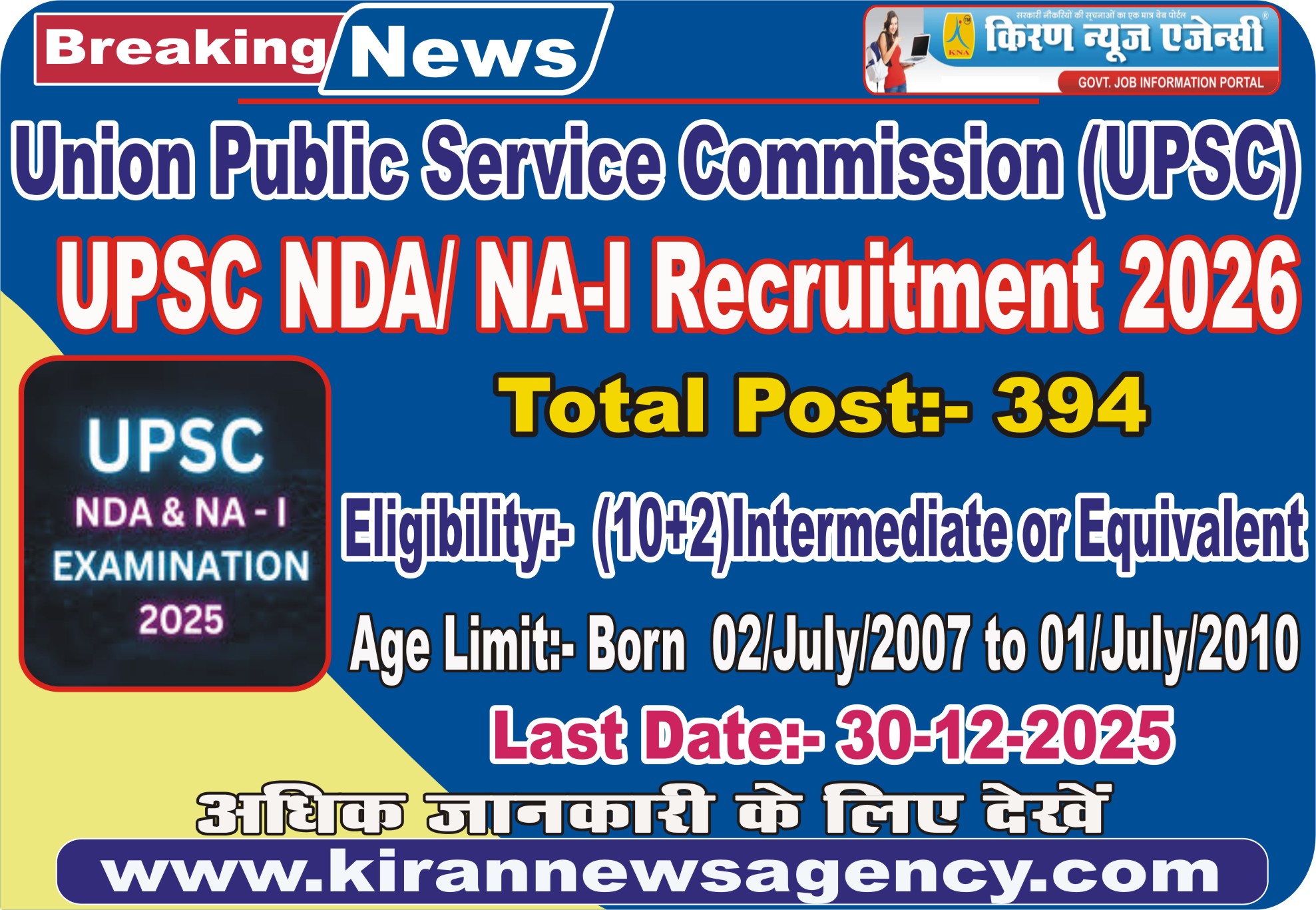 Recruitment :- UPSC NDA/ NA-I Recruitment 2026