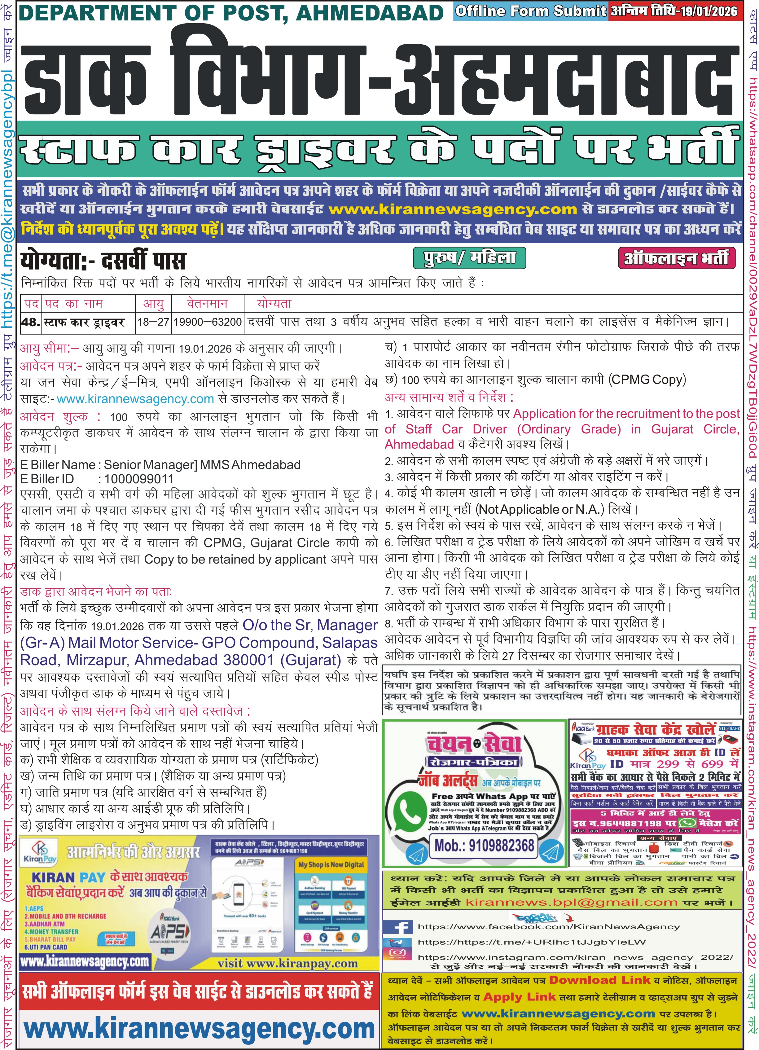 Last Date for Off Online : 19/01/2026