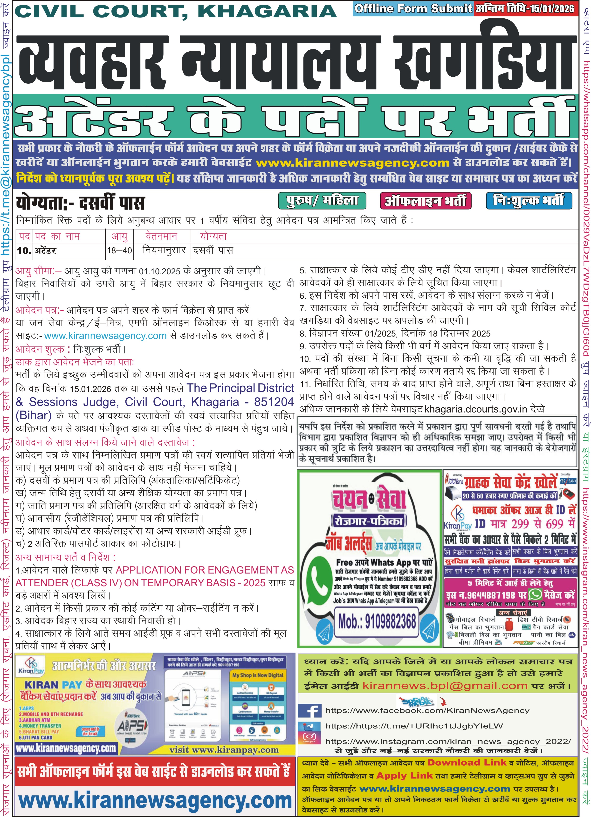 Last Date for Off Online : 15/01/2026