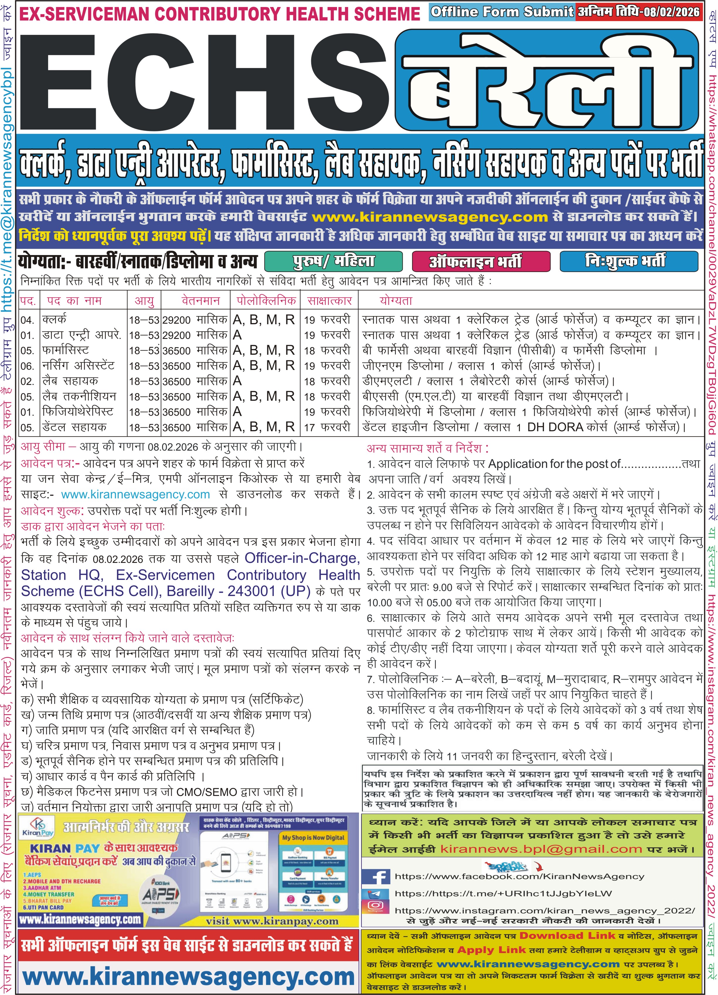 Recruitment :- Clerk, Data Entry Operator, Nursing Assistant, Pharmacist, Lab Technician, Dental Assistant, Lab Assistant, Physiotherapist