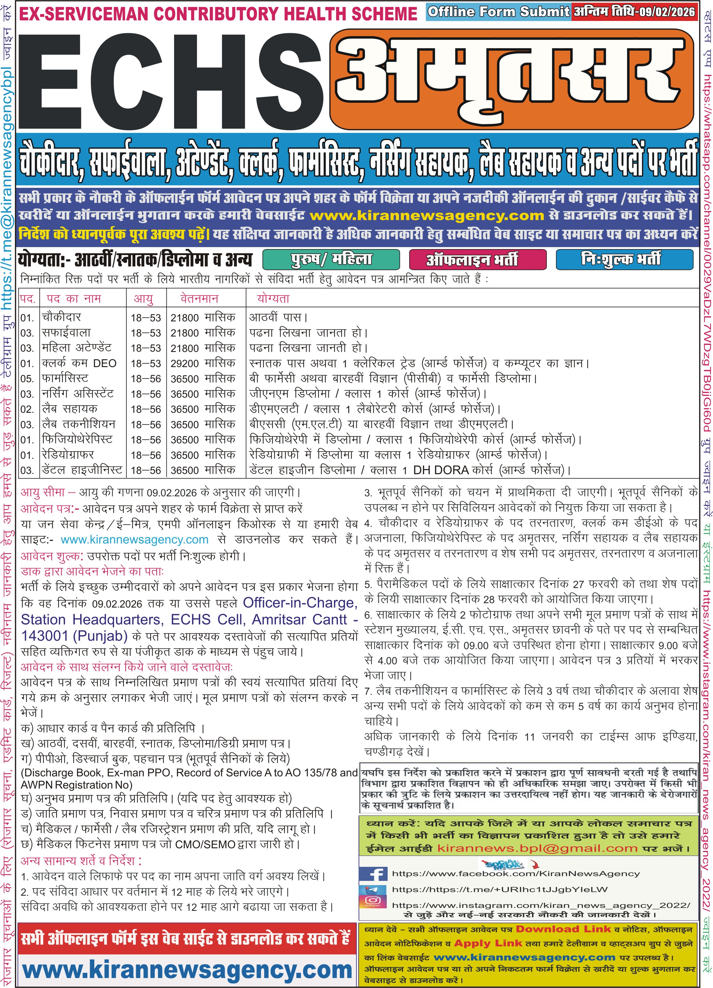 Recruitment :- Chowkidar, Safaiwala, Female Attendant, Clerk cum Data Entry Operator, Pharmacist, Nursing Assistant, Lab Technician, Lab Assistant, Physiotherapist, Dental Hygieniest, Radiographer