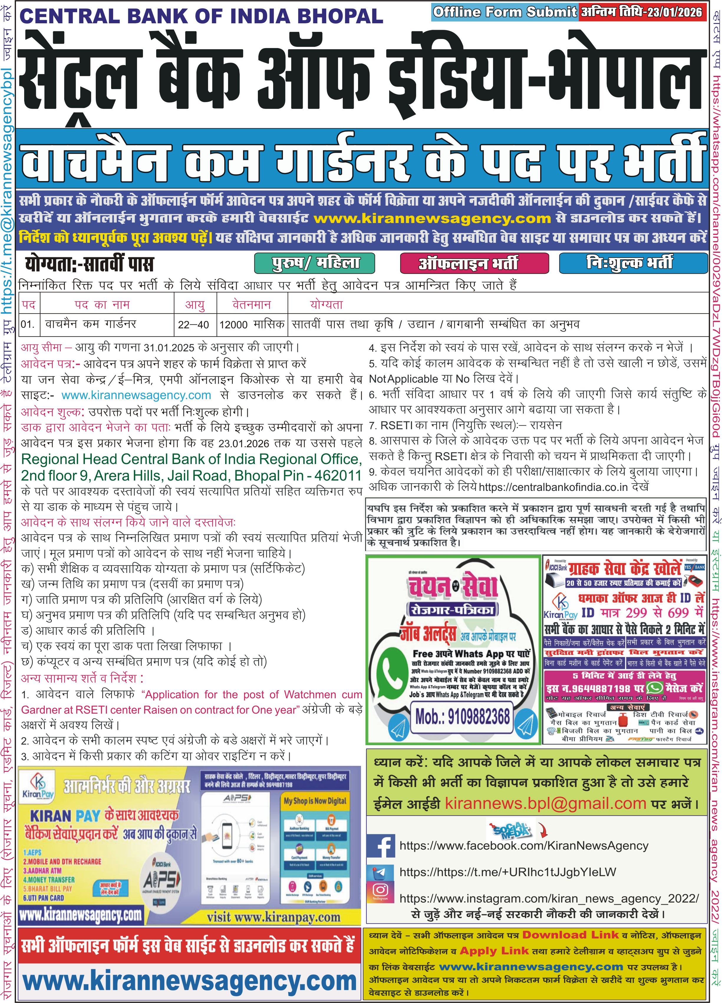 Central Bank of India, Bhopal Watchman Cum Gardene |