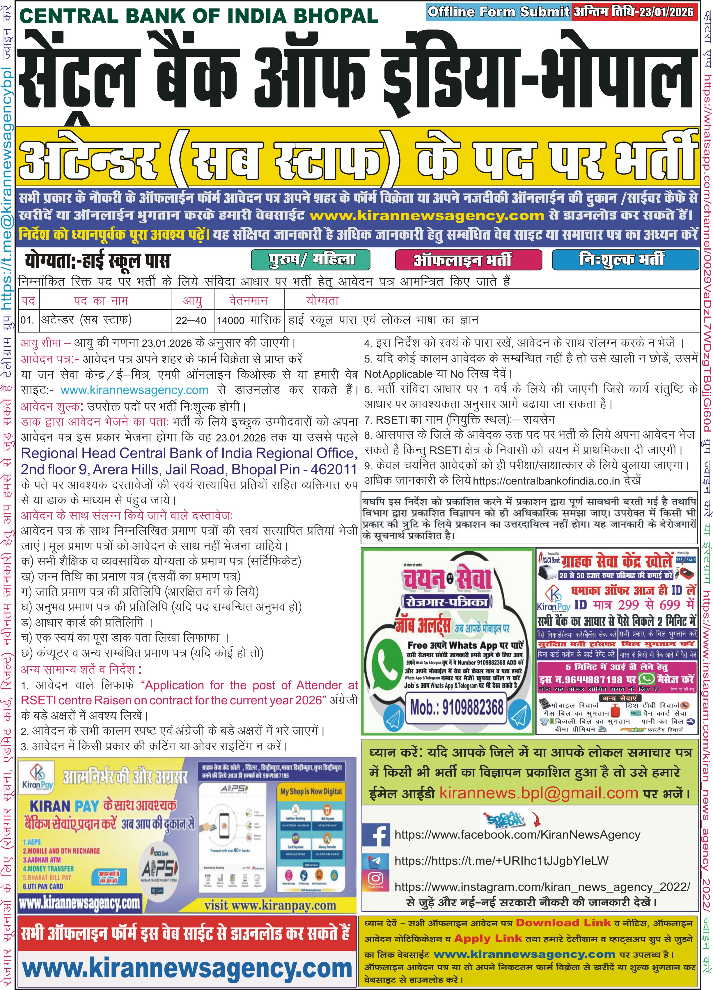 Central Bank of India, Bhopal Watchman Cum Gardene |