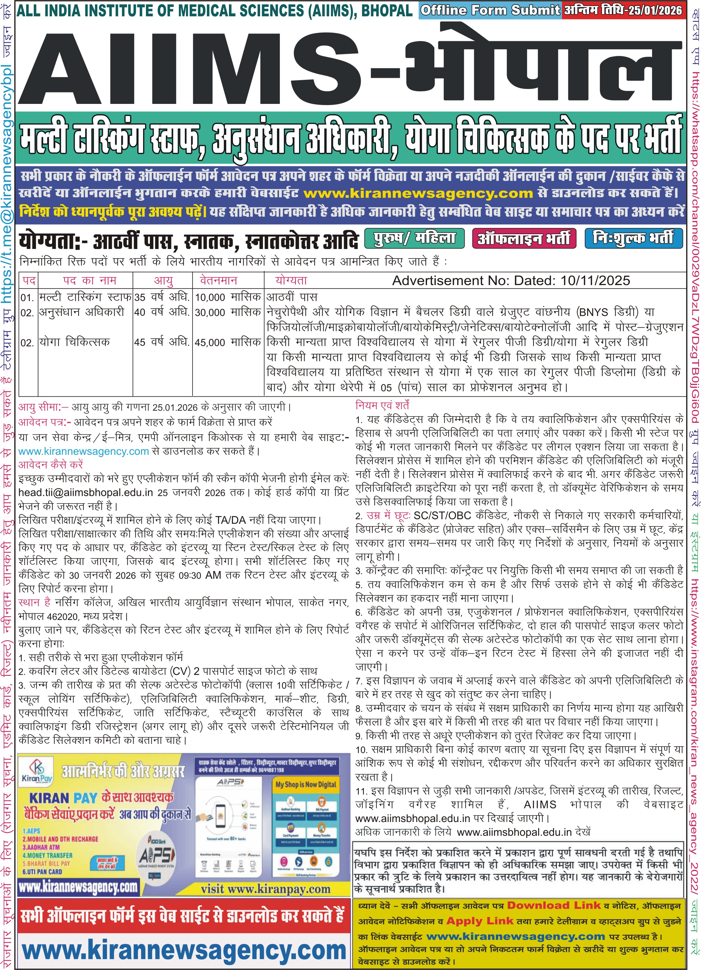 AIIMS Bhopal Multitasking Staff |