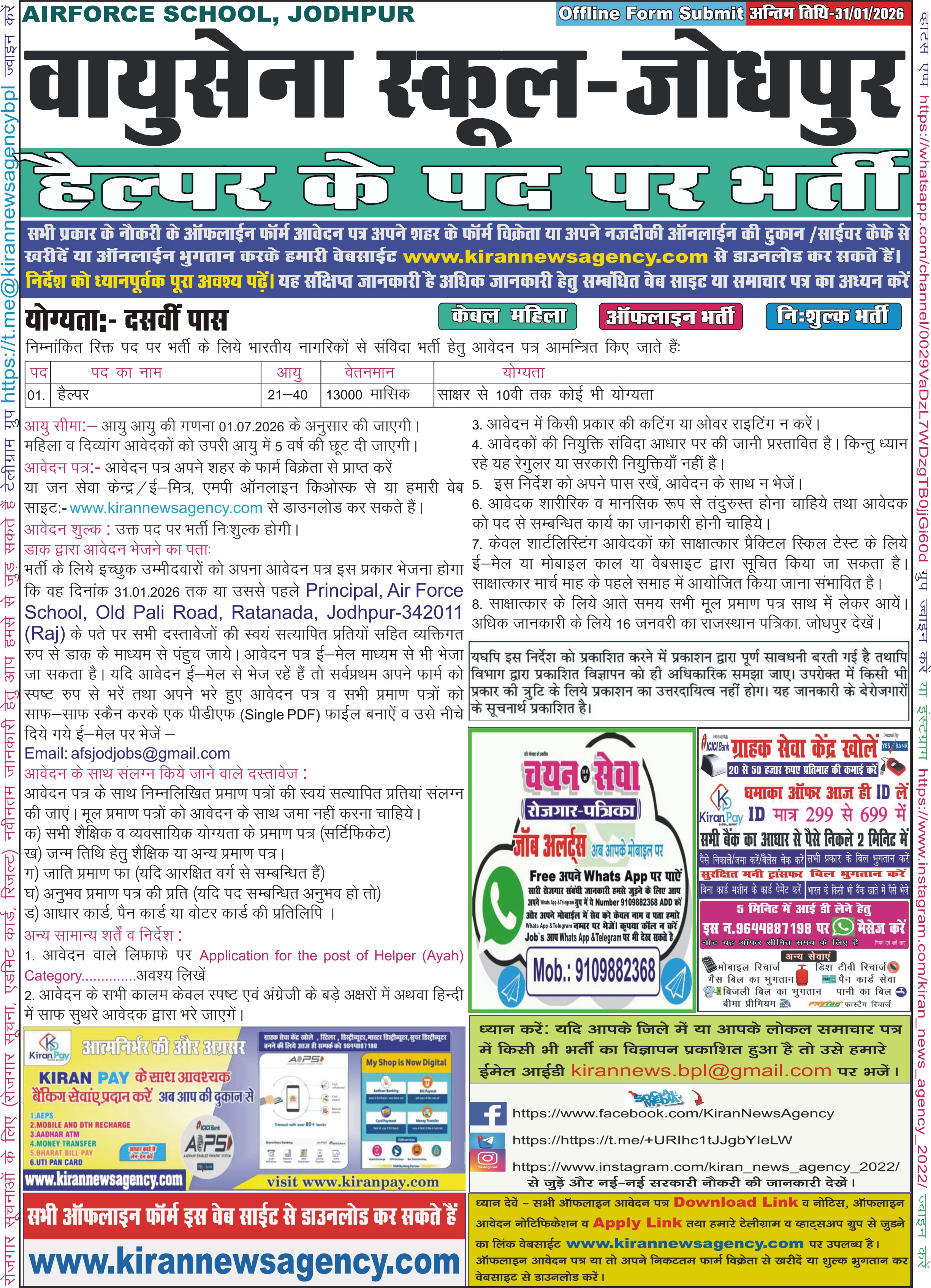 Air Force School Jodhpur Helper