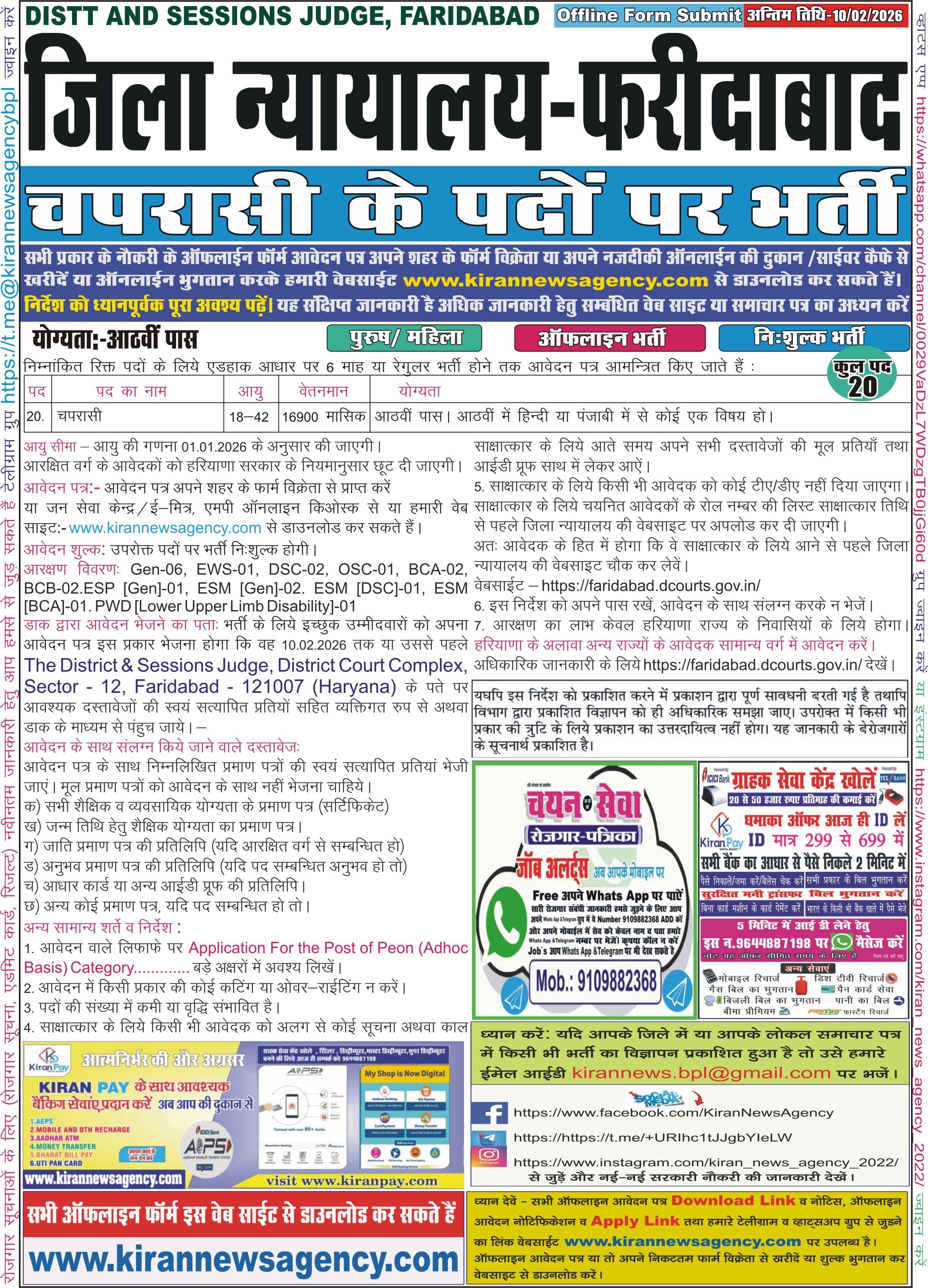 आवेदक को सलाह दी जाती है की सर्वप्रथम आवेदक विज्ञापन में दी हुई समस्त जानकारी को ध्यानपूर्वक पढ़े (यह संक्षिप्त विज्ञापन है)