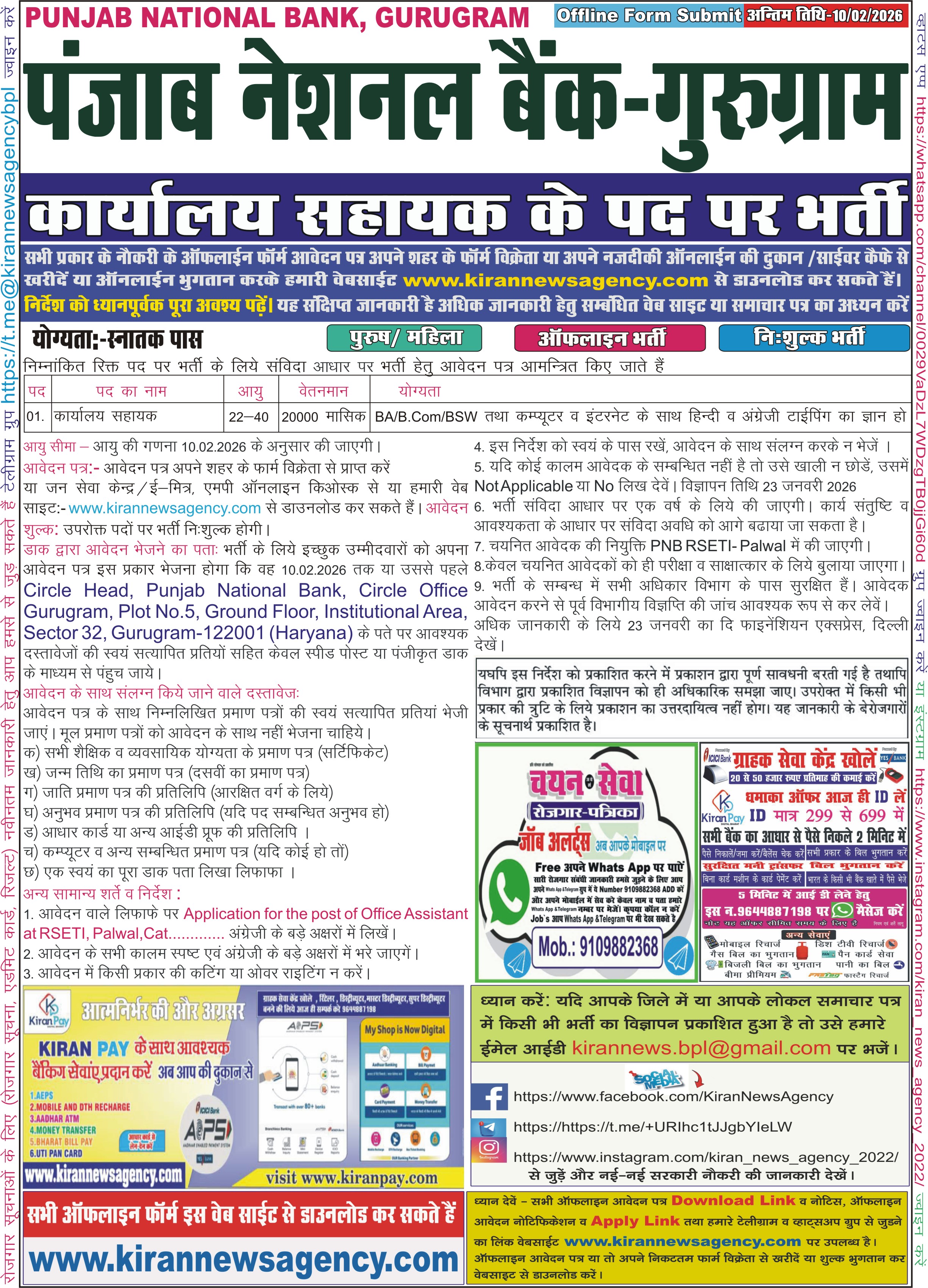 Air Force School, Chakeri Kanpur   |    Airforce School Uttarlai Barmer   |    PM Shri KV Raisen   |    Punjab National Bank Gurugram   |    Jila Nirvachan Karyalay Khandwa   |    District & Sessions Court, Palwal   |    District & Sessions Court, Faridabad   |    Nanaji Deshmukh Veterinary Science University Jab   |    District & Sessions Court, Gurugram   |    District & Sessions Court, Panipat   |    District & Sessions Court, Rohtak   |    Jila Nyayalay Gurugram   |    Sainik School Chittorgarh   |    Banaras Hindu University [BHU], Varanasi    |    Cental Bank of India, New Delhi   |    IIT BHU Varanasi   |    Panipat Urban Cooperative Bank Ltd., Panipat   |    Sardar Singh Nagrik Sahkari Bank Maryadit Tikamga   |    College of Agriculture Balaghat   |    7012 EME Bn Jodhpur   |    Air Force School Jodhpur Account   |    Air Force School Jodhpur Helper   |    Artillery School, Devlali, Distt : Nasik   |    ECHS Bharatpur   |    ECHS Jodhpur   |    ECHS Mathura   |    MPESB ITI Training Officer    |    RBI Office Attendant Online   |    RSSB Clerk Gr-II/ Junior Assistant   |    Kamala Nehru College Delhi   |    AIIMS Bhopal Multitasking Staff   |    Central Bank of India Bhopal Attender   |    Central Bank of India, Bhopal Office Assistant   |    Central Bank of India, Bhopal Watchman Cum Gardene   |    ECHS Amritsar   |    ECHS Bareilly   |    Indian Airforce Agniveer Vayu Intake    |    MP Psc Pre 2026 (State Services, State Forest Serv   |    MP Local Election Office 51 District   |    Air Force School Bhuj   |    Air Force School Hindan Ghaziabad   |    District Basic Education Office, Fatehpur   |