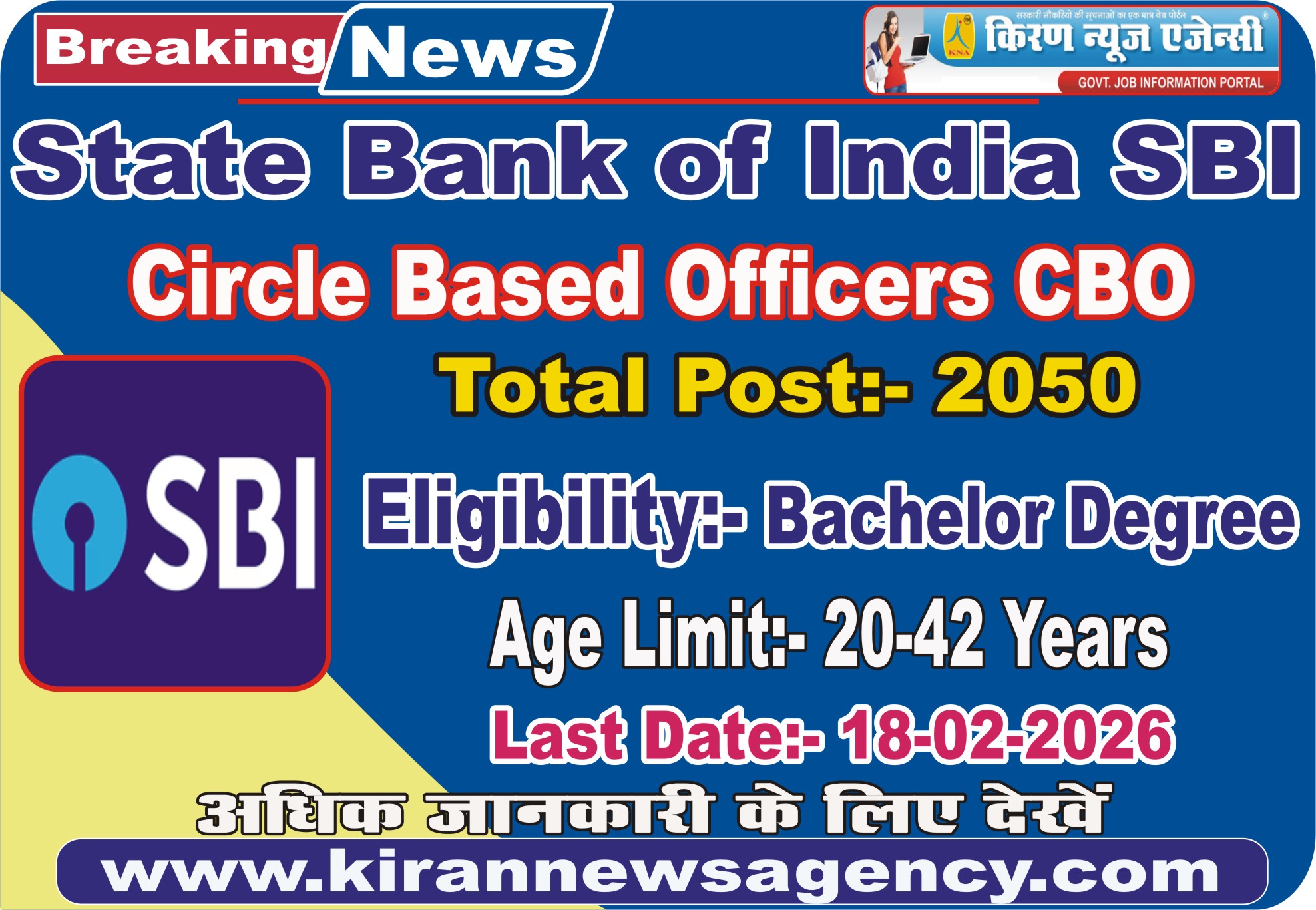 SBI CBO Recruitment 2026 : Vacancy Details Total 2050 Post |