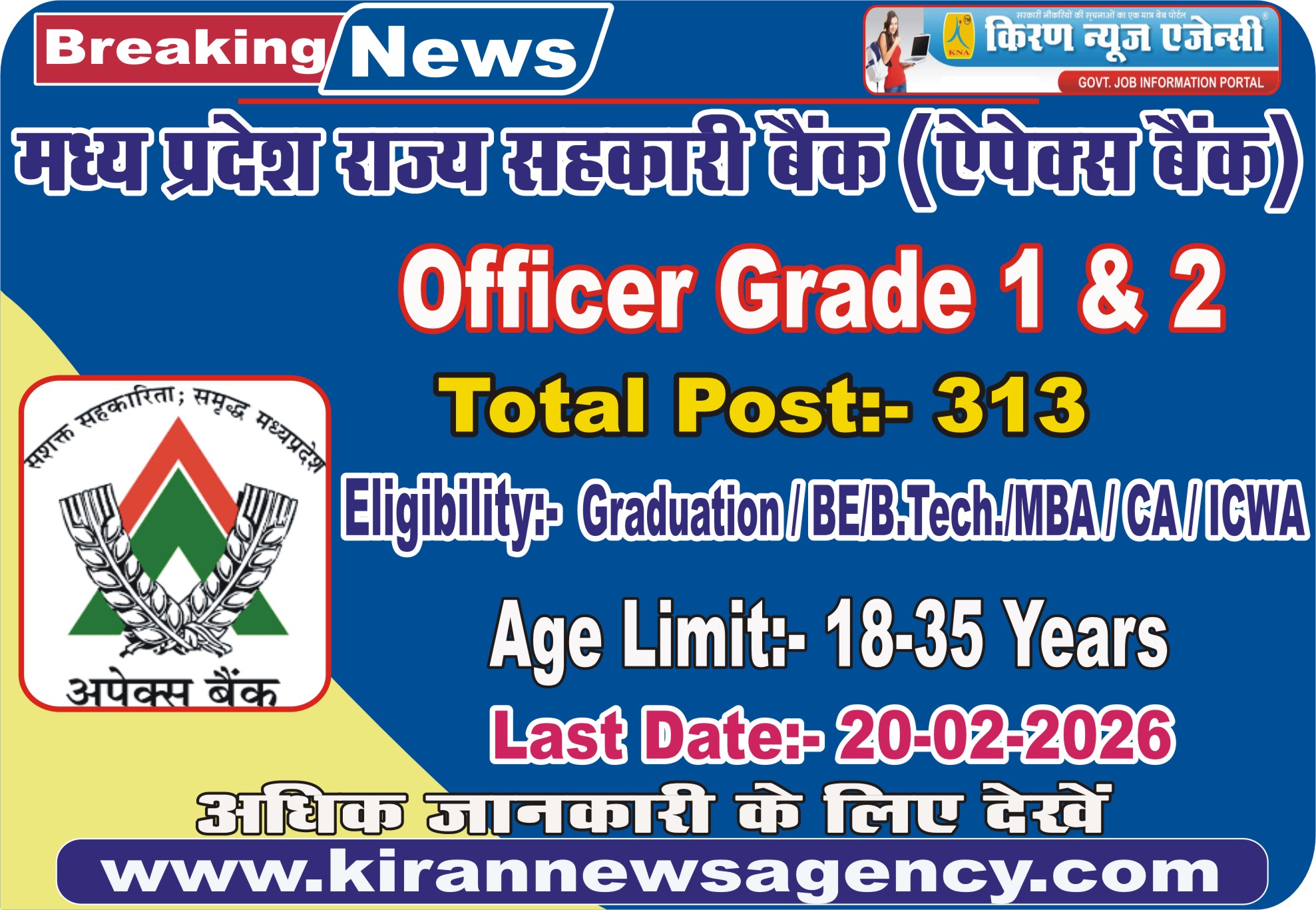 - For all the interested and eligible candidates who want to apply for MP Apex Bank Officer Grade 1 & 2 recruitment can read all the information related to the recruitment is given below and the link to apply is given in the Important Link section below.