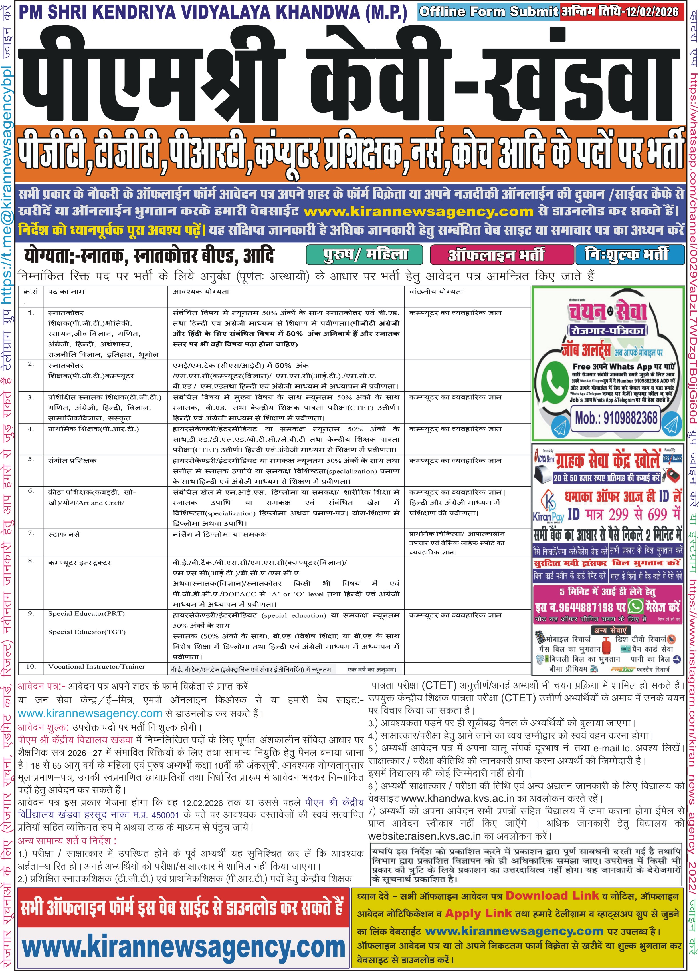 Recruitment :-Recruitment :- PGT, TGT, PRT, Computer Teacher, Yoga, Nurse, Coach