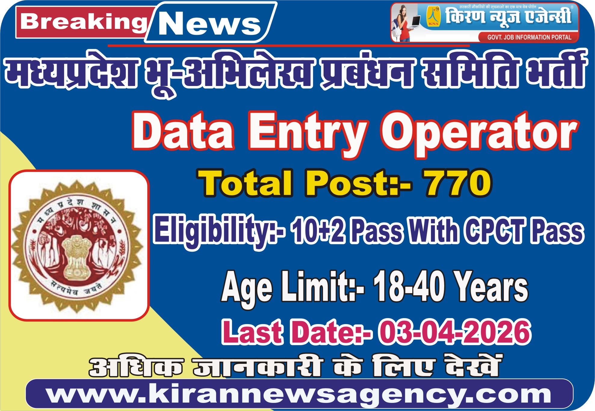 | MP Bhu Abhilekha Vacancy 2026 : संविदा भर्ती |