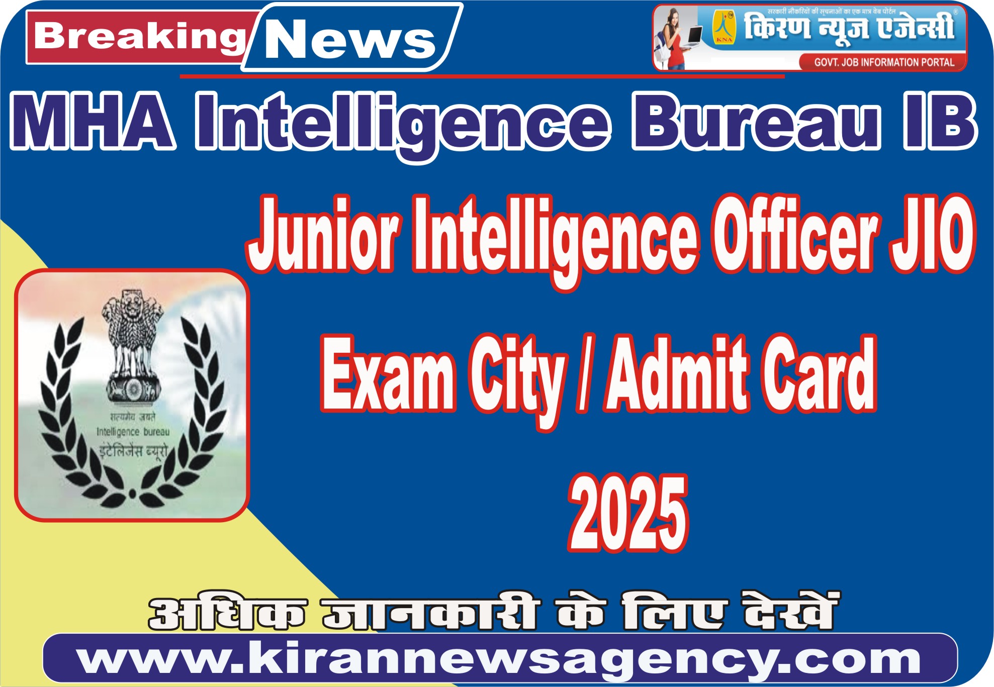 MHA IB Junior Intelligence Officer JIO Exam City / Admit Card 2025