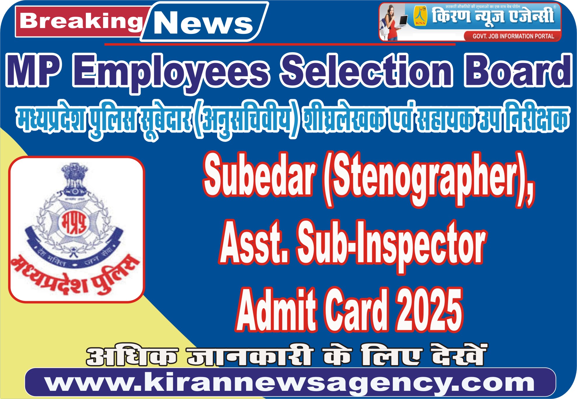 MPESB ASI (Mini.), Subedar (Steno) Admit Card 2025