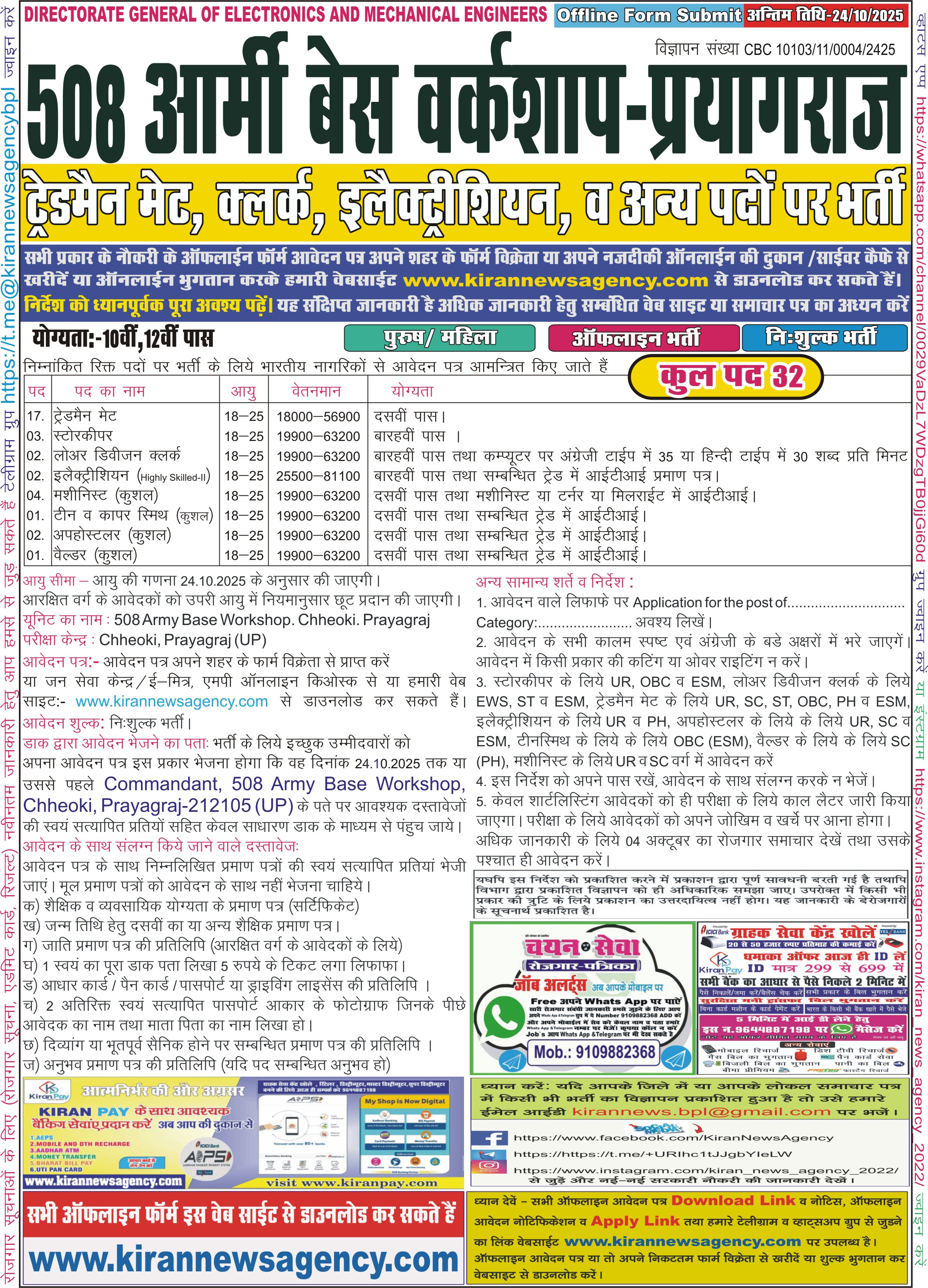 Central Ordnance Depot [DGEME-COD] Agra   |    MP Police Subedar & Asst. Sub-Inspector Bharti 202   |    National Judicial Academy Bhopal   |    Central Bank of India, Etawah   |    Central Bank of India, Ambikapur   |    Air Force School Kanpur   |    508 Army Base Workshop Prayagraj   |    506 Army Base Workshop, Jabalpur M.P.   |    Station Workshop EME, Delhi   |    510 Army Base Workshop Meerut   |    509 Army Base Workshop Agra   |    505 Army Base Workshop Delhi   |    District Legal Service Authority Sagar M.P.   |    Indian Coast Guard, Mumbai   |    MP Police Constable Last Extended   |    SSC Delhi Police Head Constable Ministerial   |    District Legal Service Authority (DLSA) Damoh   |    Indian Coast Guard, Gandhinagar   |    EkLavya Model EMRS TGT PGT and Other Post   |    SSC Sub Inspector CPO SI    |    SSC Delhi Police Constable Driver    |    BPSSC Bihar Police Sub Inspector SI   |    NTA CSIR UGC NET December 2025    |    CSBC Bihar Police Jail Warden & Other Post   |    Delhi Development Authority DDA    |    SSC Delhi Police Head Constable AWO / TPO Online F   |    Punjab & Sind Bank Office Assistant   |    Punjab & Sind Bank Watchman Attender   |    SSC Delhi Police Constable Executive   |    Indian Coast Guard Kolkata   |    MPESB MP Police Subedar Stenographer, ASI Minister   |