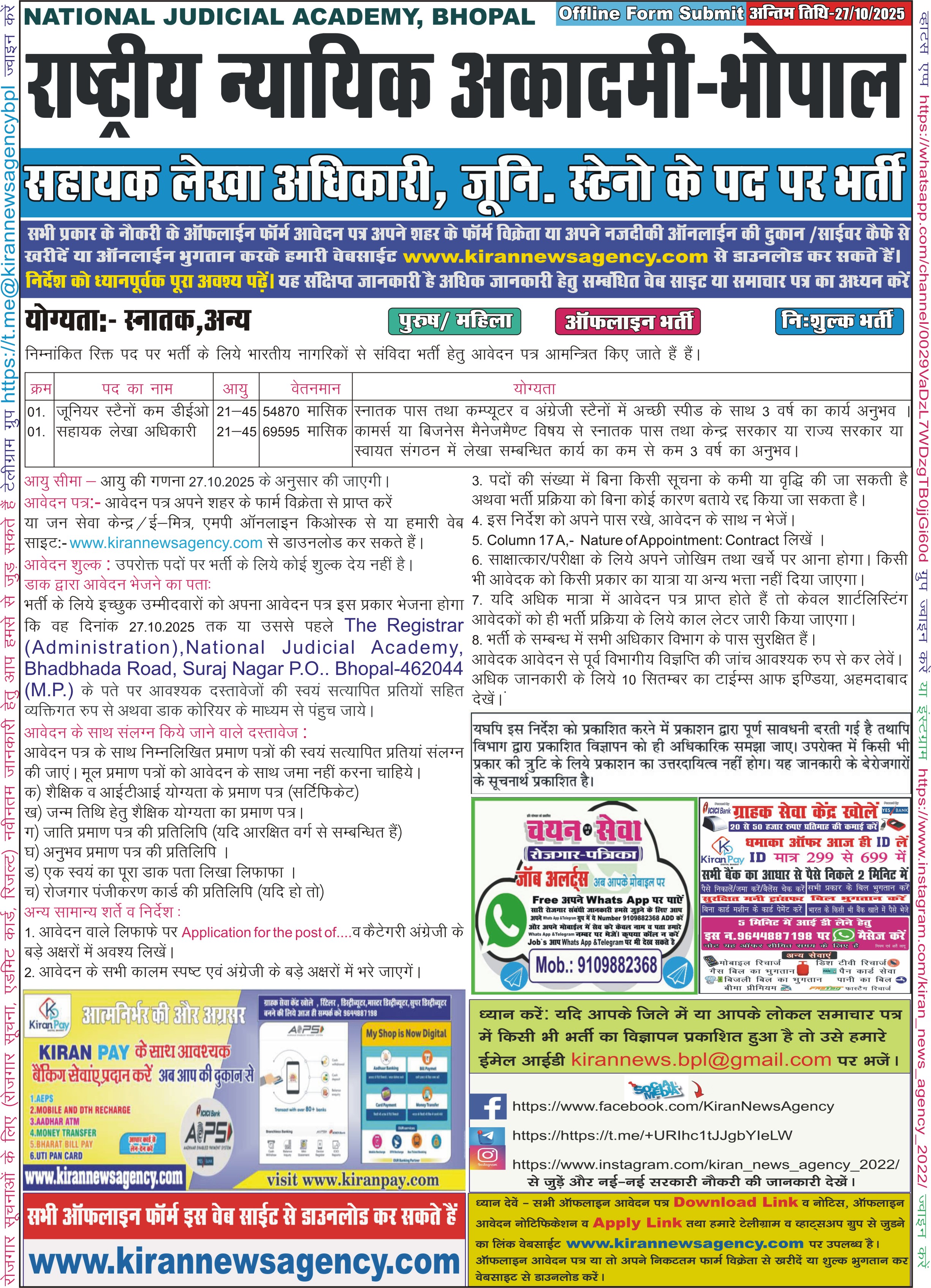 Recruitment :- Jr Steno cum DEO, Assistant Account Officer
