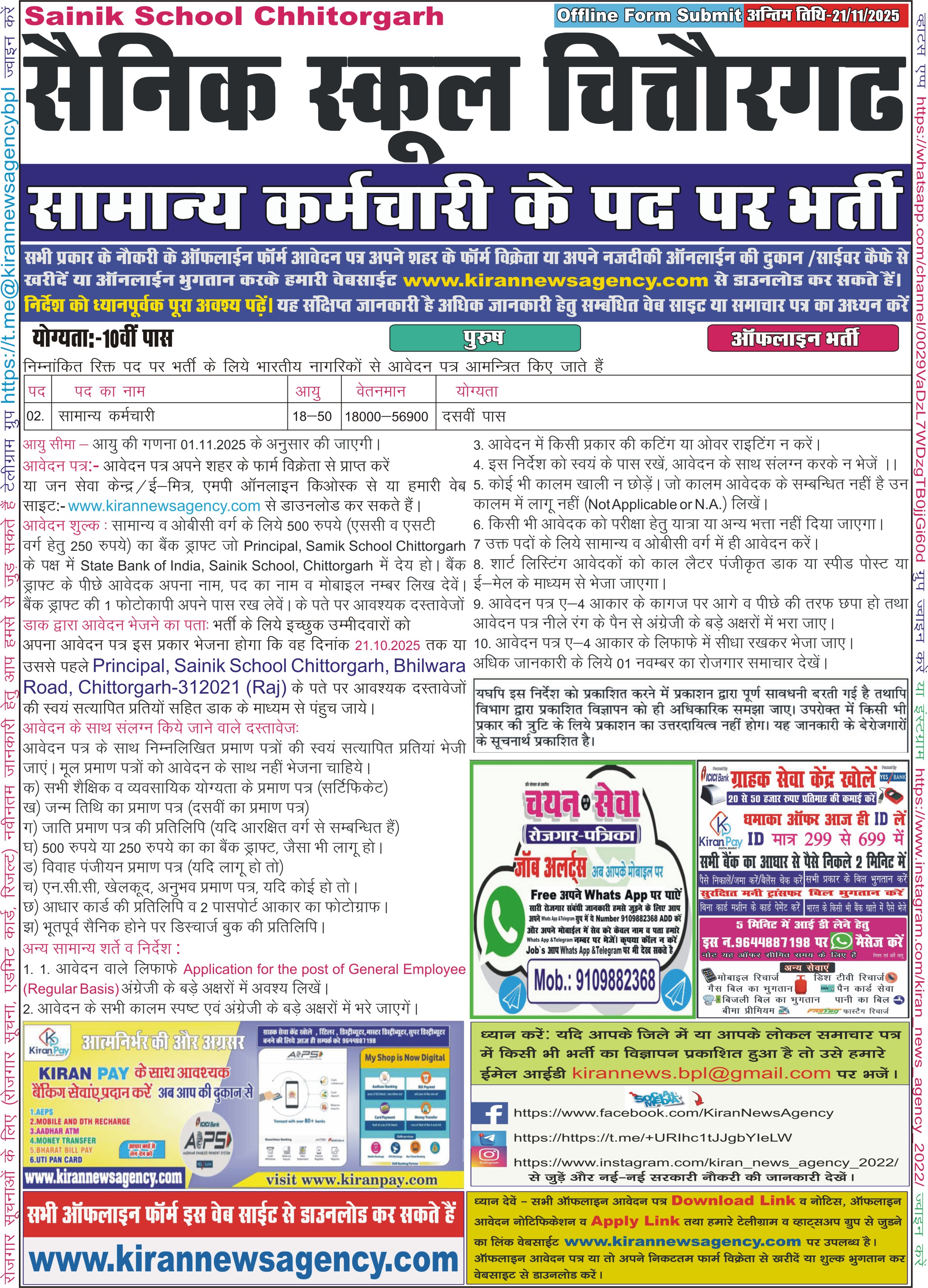 Last Date for Off Online : 21/11/2025