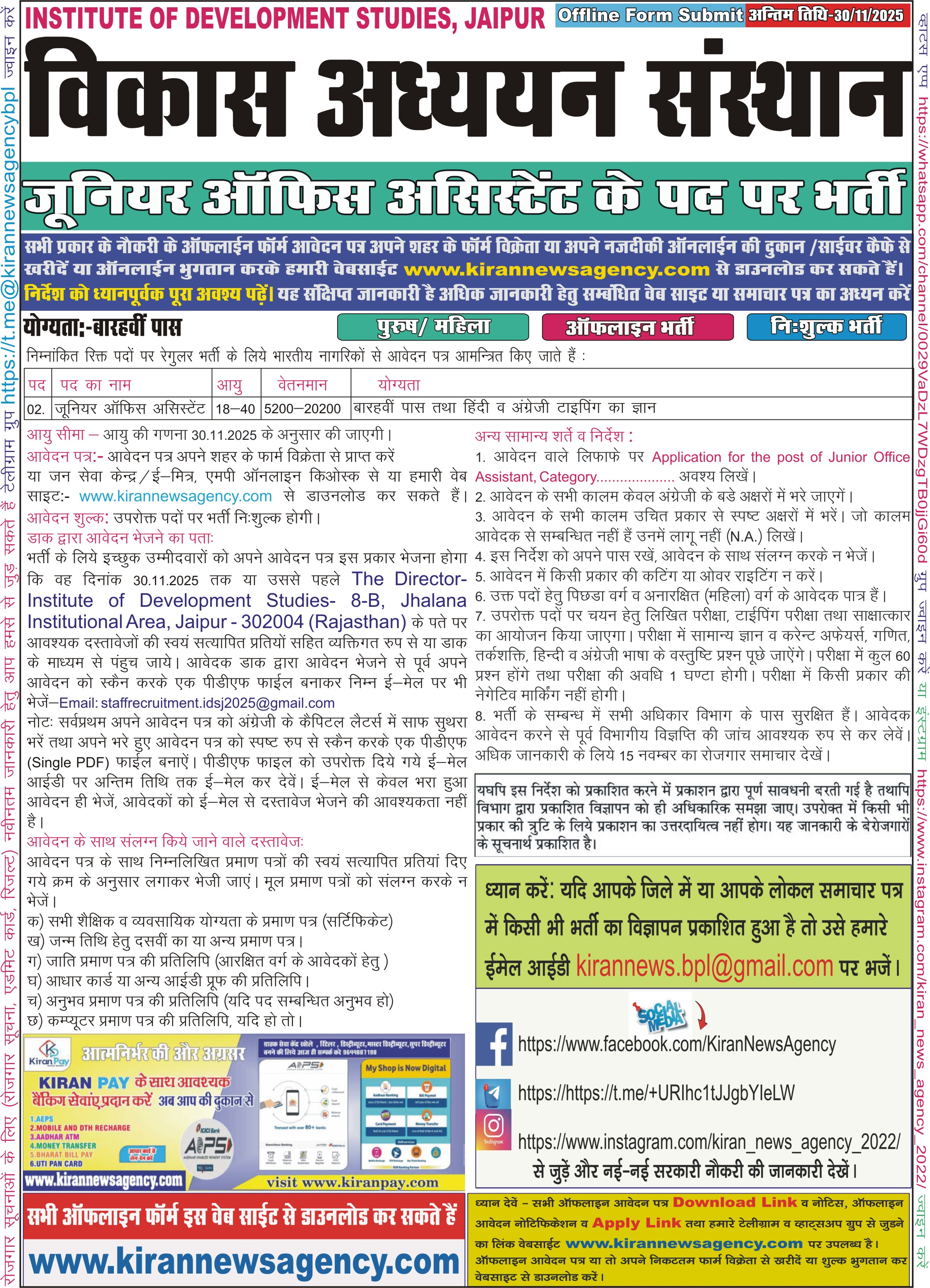 Last Date for Off Online : 30/11/2025