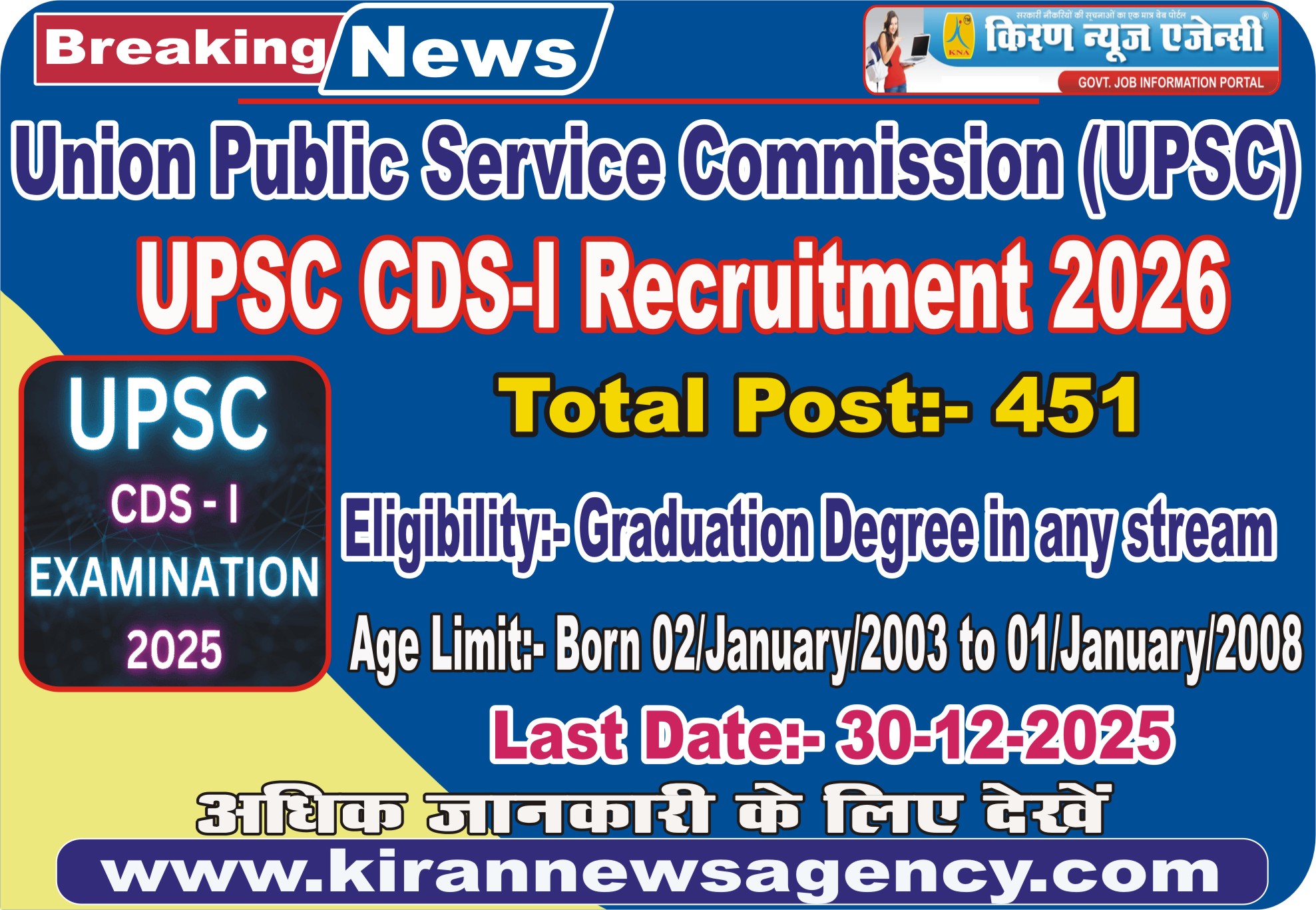 Recruitment :- UPSC CDS-I Recruitment 2026