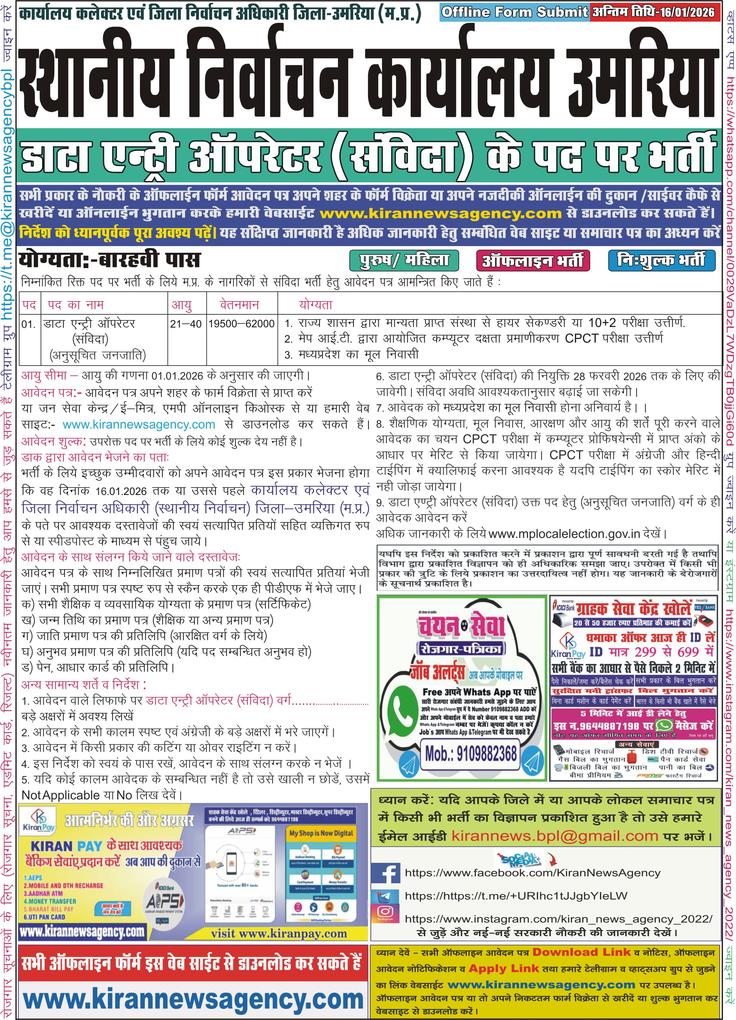 Last Date for Off Online : 16/01/2026