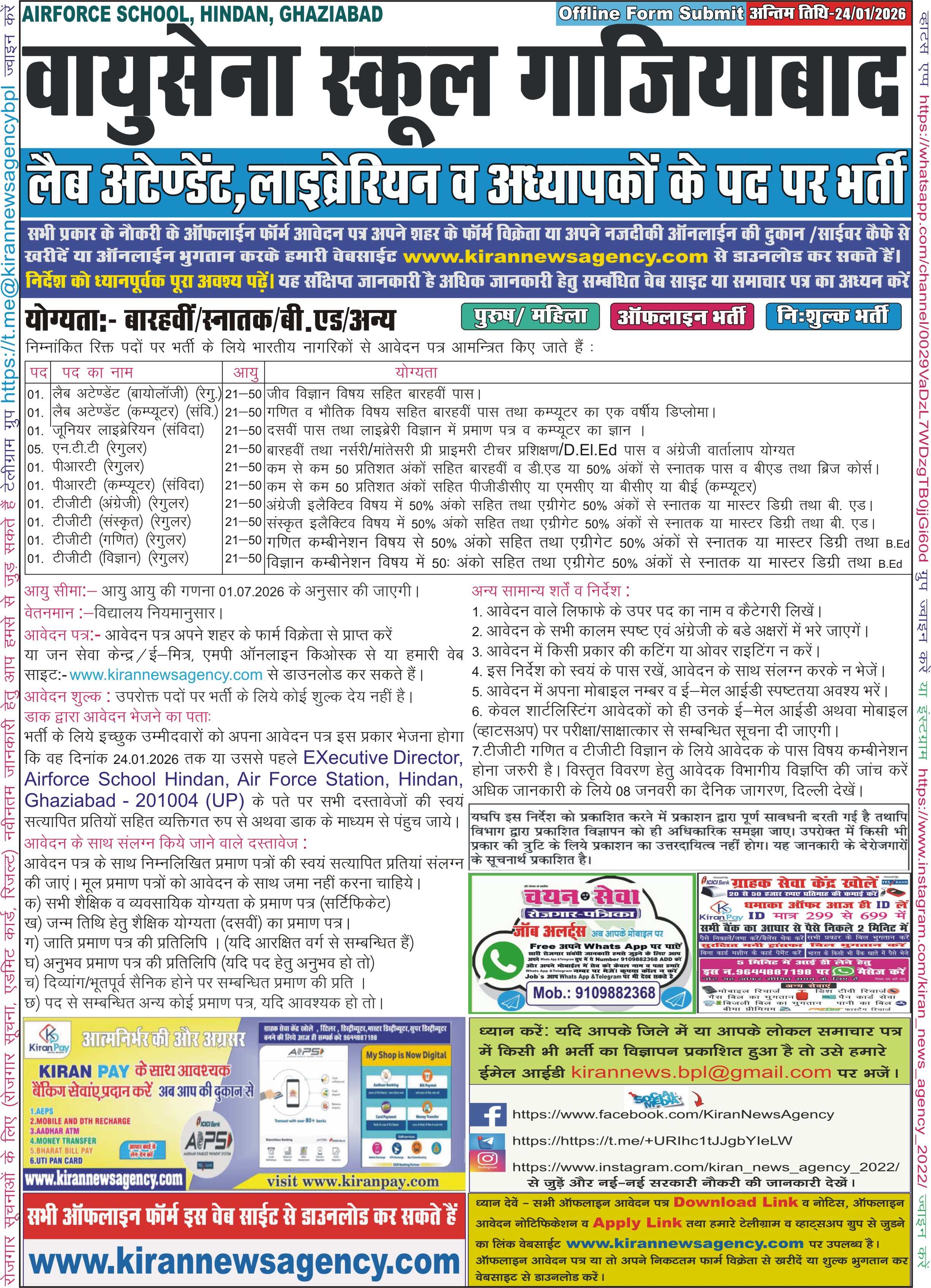 Recruitment :- Lab Assistant, Assistant Librarian, NTT, PRT, TGT Teacher