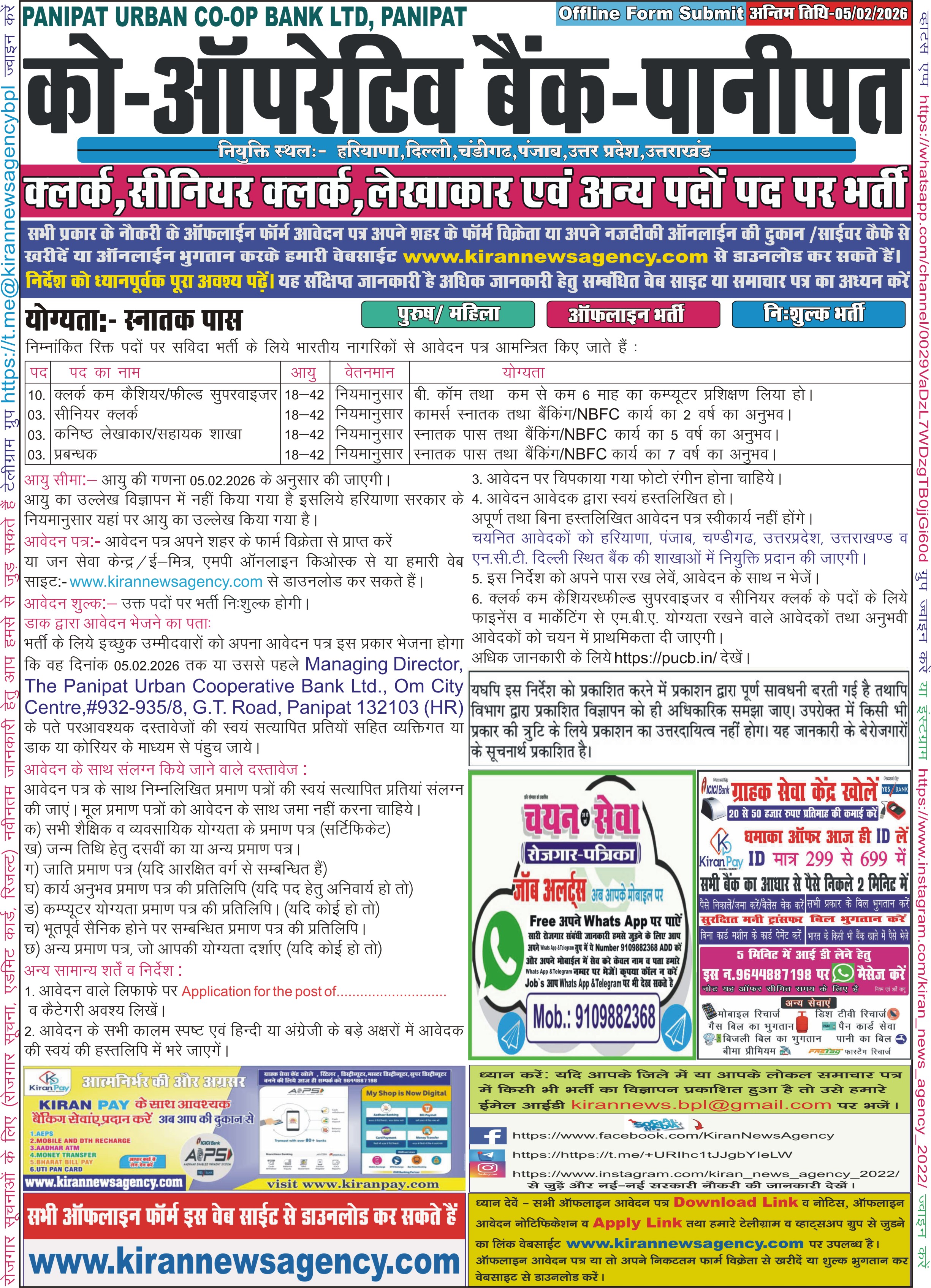 Recruitment :- Clerk cum Cashier/Field Supervisior, Senior Clerk, Junior Accountant, Branch Manager