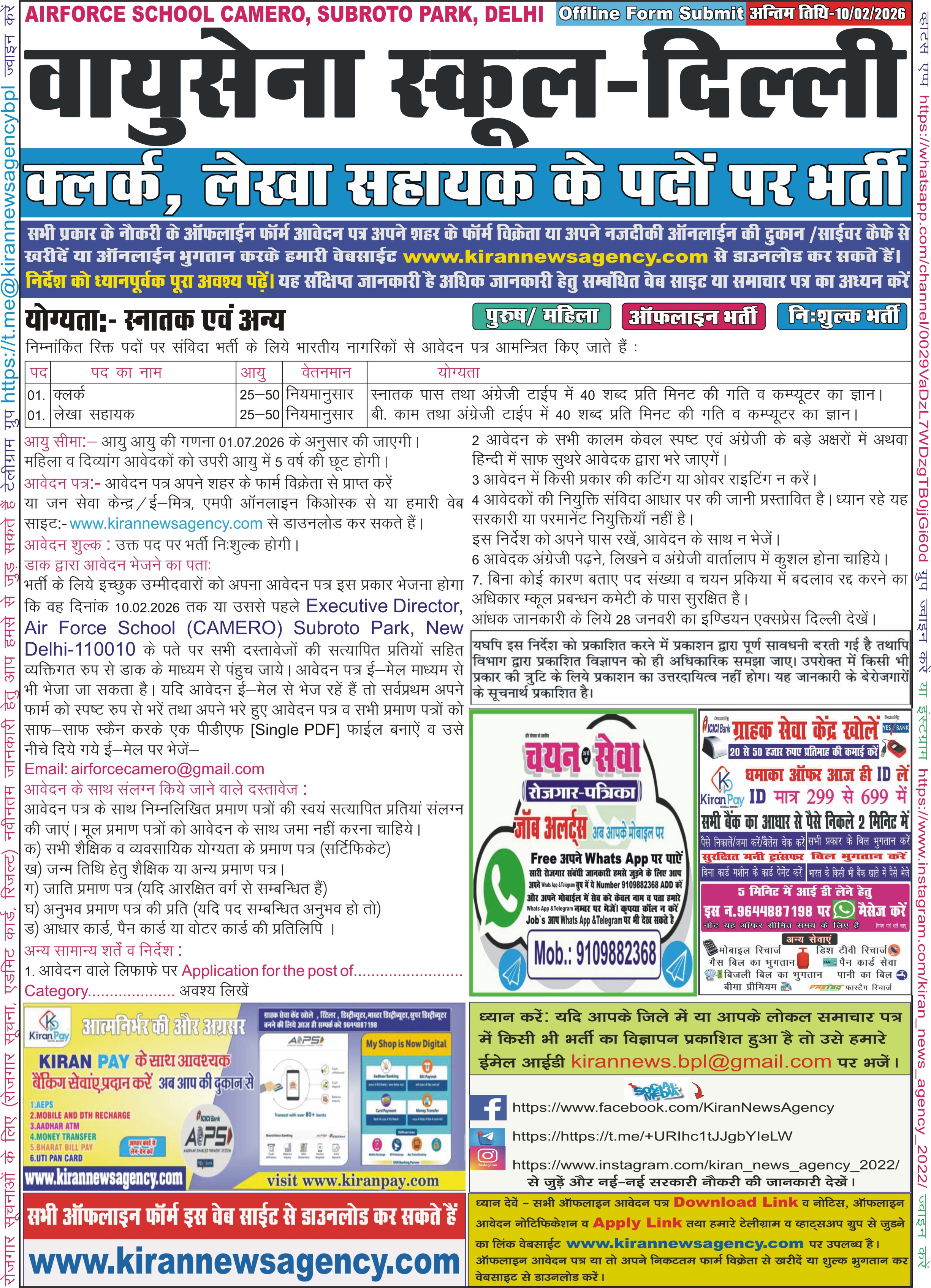 AIIMS Delhi   |    Air Force School CAMERO Delhi   |    Army Public School Lucknow   |    Bhartiy Vayusena School CAMERO Delhi   |    Vayu Sena School CAMERO Delhi   |    Air Force School, Chakeri Kanpur   |    Airforce School Uttarlai Barmer   |    PM Shri KV Raisen   |    Punjab National Bank Gurugram   |    Jila Nirvachan Karyalay Khandwa   |    District & Sessions Court, Palwal   |    District & Sessions Court, Faridabad   |    Nanaji Deshmukh Veterinary Science University Jab   |    District & Sessions Court, Gurugram   |    District & Sessions Court, Panipat   |    District & Sessions Court, Rohtak   |    Jila Nyayalay Gurugram   |    Sainik School Chittorgarh   |    Banaras Hindu University [BHU], Varanasi    |    Cental Bank of India, New Delhi   |    IIT BHU Varanasi   |    Panipat Urban Cooperative Bank Ltd., Panipat   |    Sardar Singh Nagrik Sahkari Bank Maryadit Tikamga   |    College of Agriculture Balaghat   |    7012 EME Bn Jodhpur   |    Air Force School Jodhpur Account   |    Air Force School Jodhpur Helper   |    Artillery School, Devlali, Distt : Nasik   |    ECHS Bharatpur   |    ECHS Jodhpur   |    ECHS Mathura   |    MPESB ITI Training Officer    |    RBI Office Attendant Online   |    RSSB Clerk Gr-II/ Junior Assistant   |    Kamala Nehru College Delhi   |    AIIMS Bhopal Multitasking Staff   |    Central Bank of India Bhopal Attender   |    Central Bank of India, Bhopal Office Assistant   |    Central Bank of India, Bhopal Watchman Cum Gardene   |    ECHS Amritsar   |    ECHS Bareilly   |    Indian Airforce Agniveer Vayu Intake    |    MP Psc Pre 2026 (State Services, State Forest Serv   |