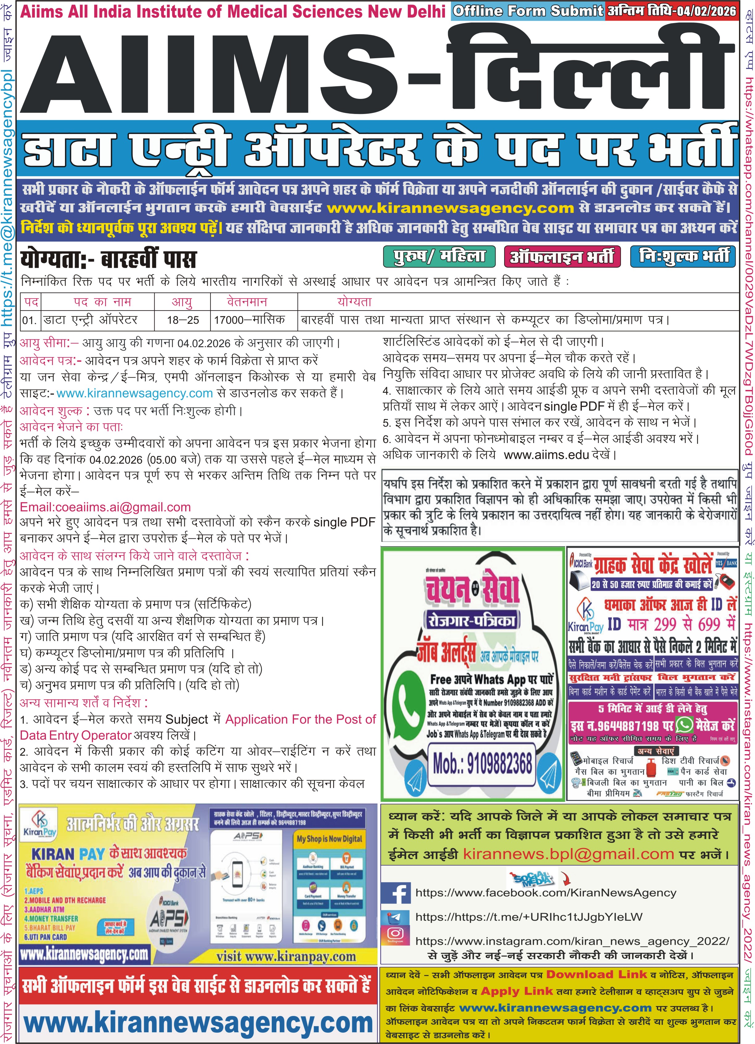 AIIMS Delhi   |    Air Force School CAMERO Delhi   |    Army Public School Lucknow   |    Bhartiy Vayusena School CAMERO Delhi   |    Vayu Sena School CAMERO Delhi   |    Air Force School, Chakeri Kanpur   |    Airforce School Uttarlai Barmer   |    PM Shri KV Raisen   |    Punjab National Bank Gurugram   |    Jila Nirvachan Karyalay Khandwa   |    District & Sessions Court, Palwal   |    District & Sessions Court, Faridabad   |    Nanaji Deshmukh Veterinary Science University Jab   |    District & Sessions Court, Gurugram   |    District & Sessions Court, Panipat   |    District & Sessions Court, Rohtak   |    Jila Nyayalay Gurugram   |    Sainik School Chittorgarh   |    Banaras Hindu University [BHU], Varanasi    |    Cental Bank of India, New Delhi   |    IIT BHU Varanasi   |    Panipat Urban Cooperative Bank Ltd., Panipat   |    Sardar Singh Nagrik Sahkari Bank Maryadit Tikamga   |    College of Agriculture Balaghat   |    7012 EME Bn Jodhpur   |    Air Force School Jodhpur Account   |    Air Force School Jodhpur Helper   |    Artillery School, Devlali, Distt : Nasik   |    ECHS Bharatpur   |    ECHS Jodhpur   |    ECHS Mathura   |    MPESB ITI Training Officer    |    RBI Office Attendant Online   |    RSSB Clerk Gr-II/ Junior Assistant   |    Kamala Nehru College Delhi   |    AIIMS Bhopal Multitasking Staff   |    Central Bank of India Bhopal Attender   |    Central Bank of India, Bhopal Office Assistant   |    Central Bank of India, Bhopal Watchman Cum Gardene   |    ECHS Amritsar   |    ECHS Bareilly   |    Indian Airforce Agniveer Vayu Intake    |    MP Psc Pre 2026 (State Services, State Forest Serv   |