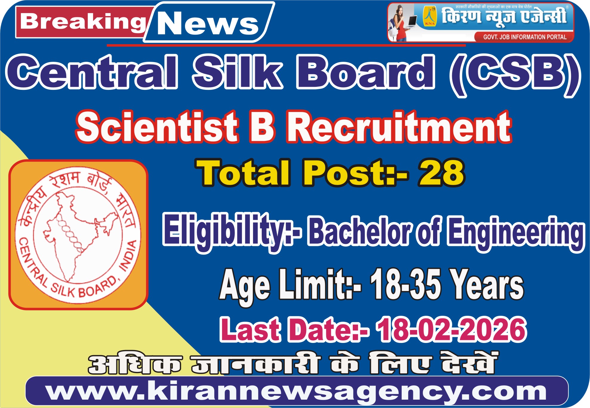 Interested Candidates Can Read the Full Central Silk Board Scientist B Exam 2026 Notification Before Apply Online |
