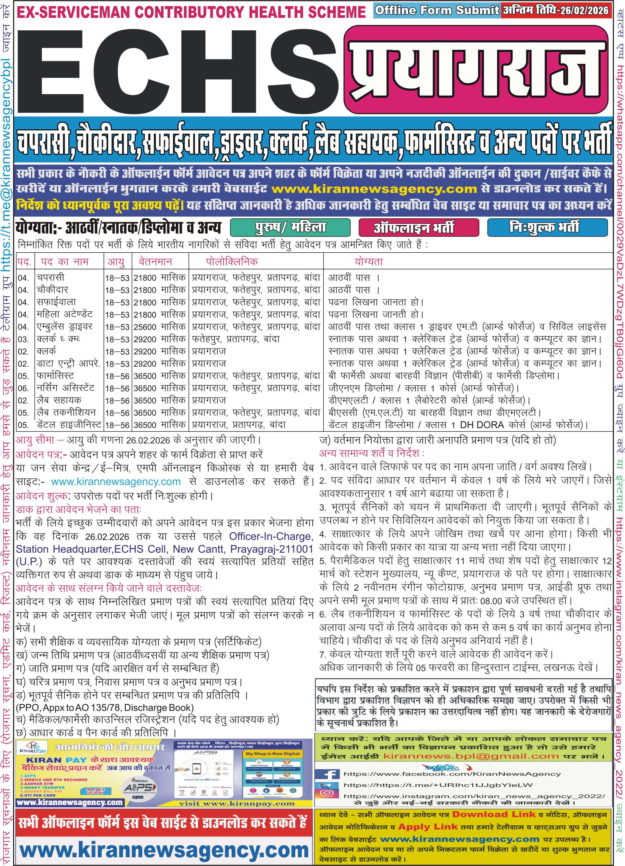 Recruitment :- Peon, Chowkidar, Safaiwala, Female Attendant, Driver, Clerk, Data Entry Operator, Nursing Assistant, Pharmacist, Lab Technician, Lab Assistant, Dental Hygieniest