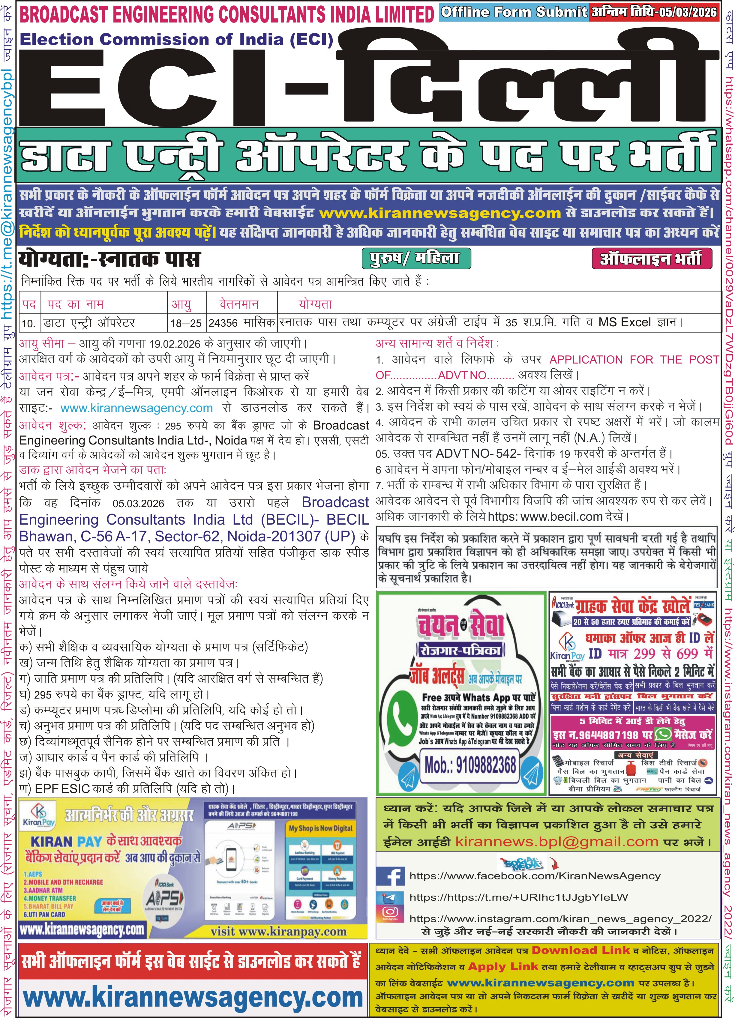 आवेदक को सलाह दी जाती है की सर्वप्रथम आवेदक विज्ञापन में दी हुई समस्त जानकारी को ध्यानपूर्वक पढ़े (यह संक्षिप्त विज्ञापन है)