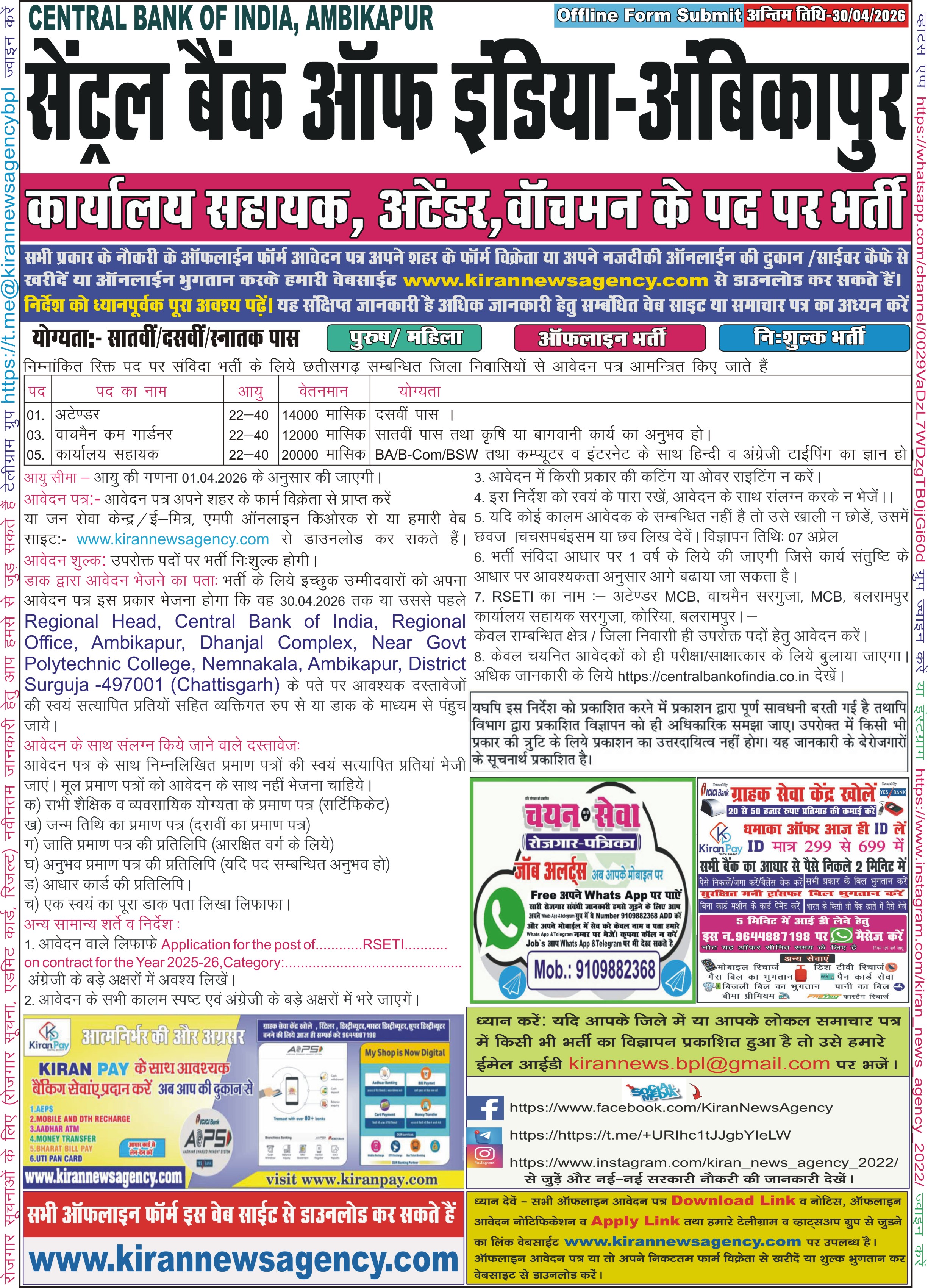 आवेदक को सलाह दी जाती है की सर्वप्रथम आवेदक विज्ञापन में दी हुई समस्त जानकारी को ध्यानपूर्वक पढ़े (यह संक्षिप्त विज्ञापन है)