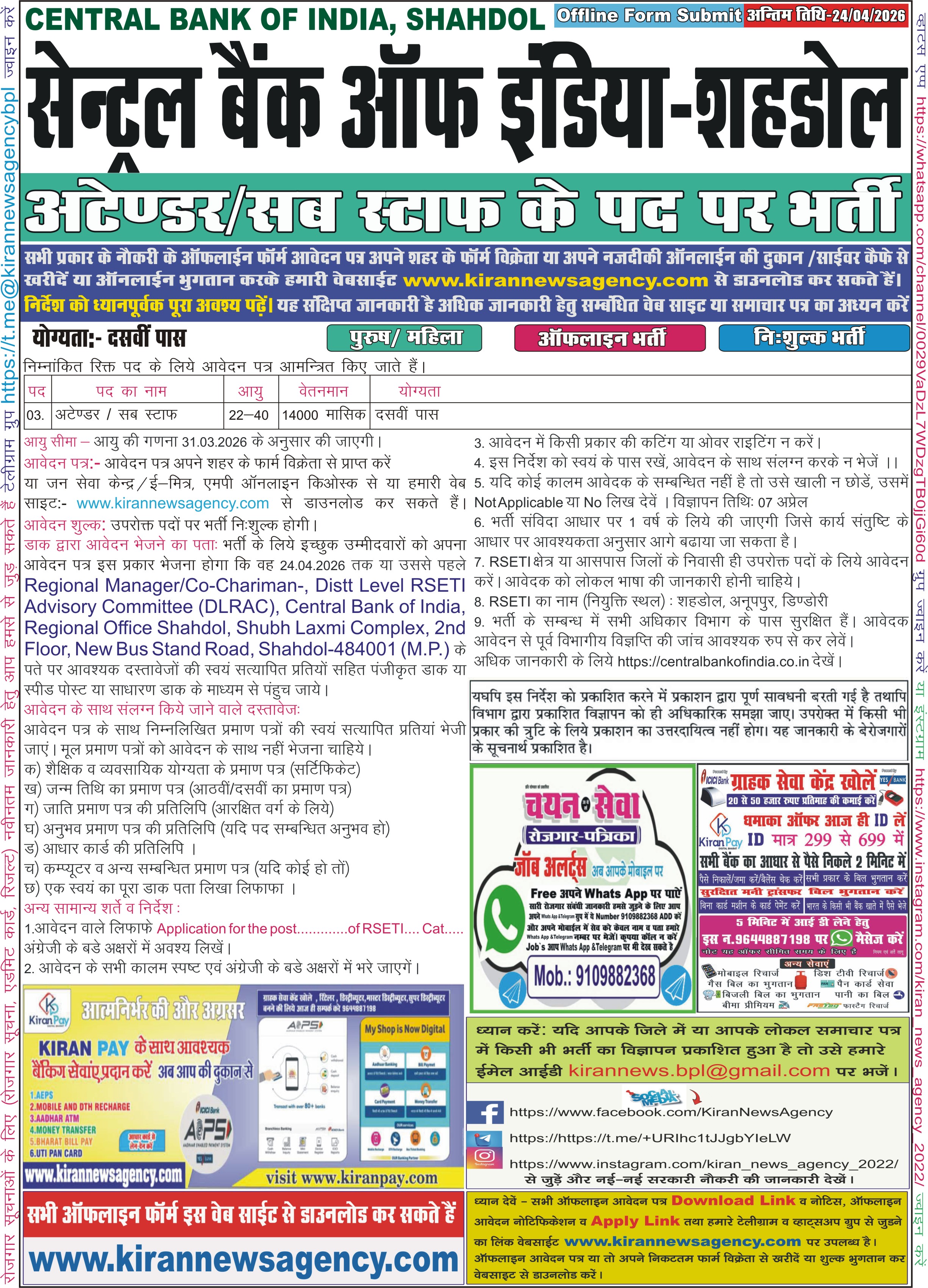 आवेदक को सलाह दी जाती है की सर्वप्रथम आवेदक विज्ञापन में दी हुई समस्त जानकारी को ध्यानपूर्वक पढ़े (यह संक्षिप्त विज्ञापन है)