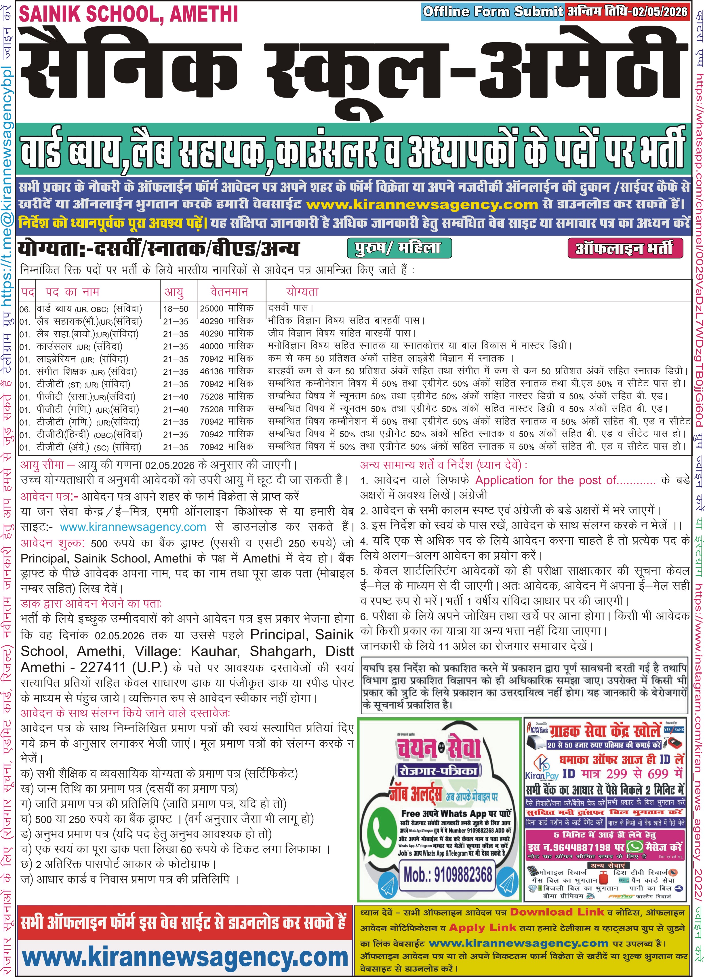 आवेदक को सलाह दी जाती है की सर्वप्रथम आवेदक विज्ञापन में दी हुई समस्त जानकारी को ध्यानपूर्वक पढ़े (यह संक्षिप्त विज्ञापन है)