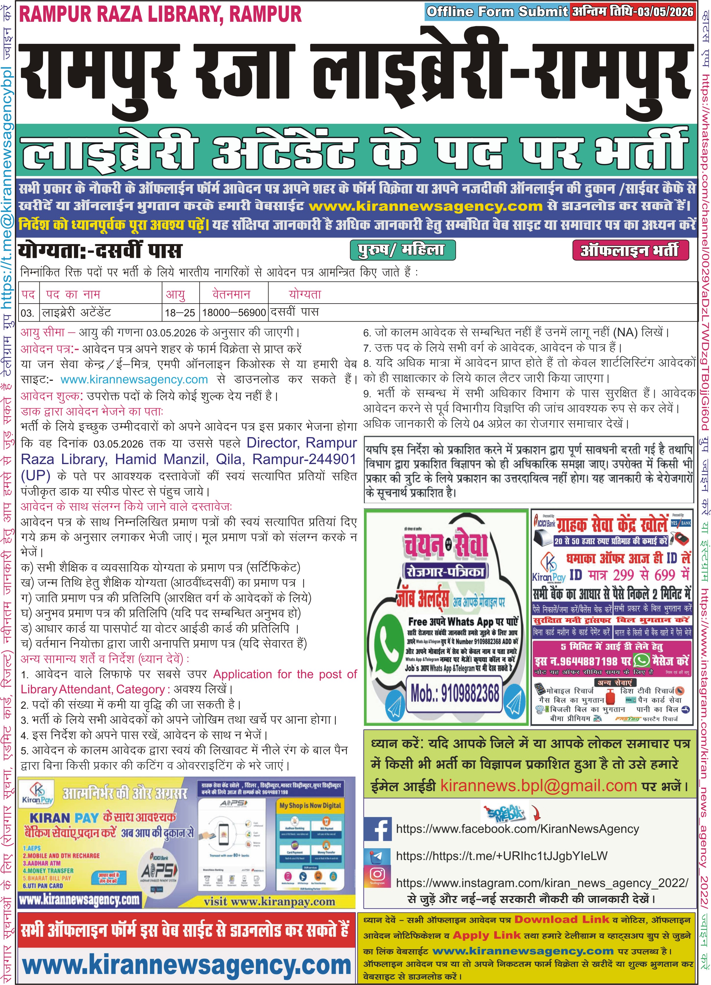 Recruitment :- Library Attendant