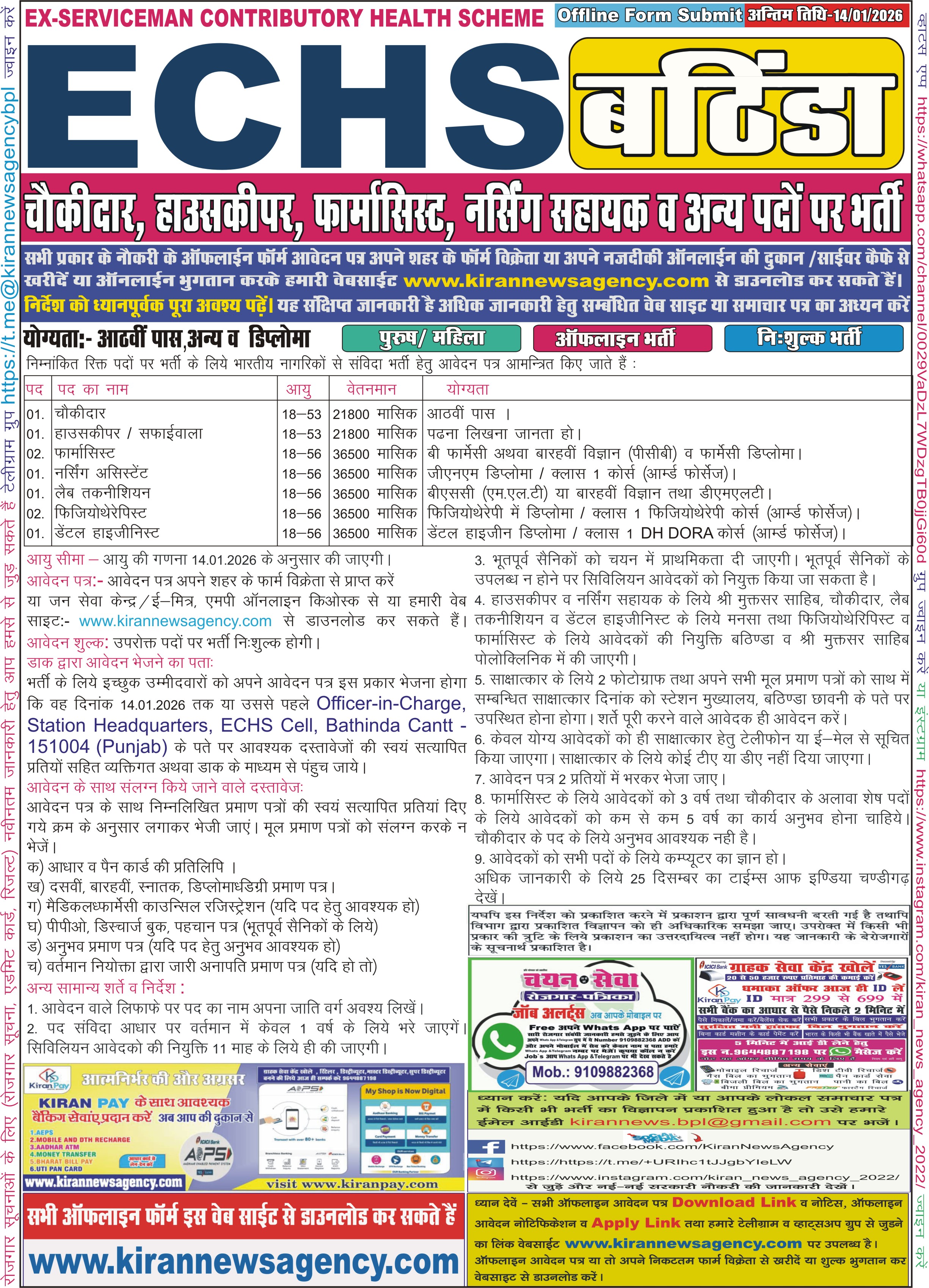 Recruitment :- Chowkidar, Housekeeper, Pharmacist, Nursing Assistant, Lab Technician, Physiotherapist, Dental Hygieniest