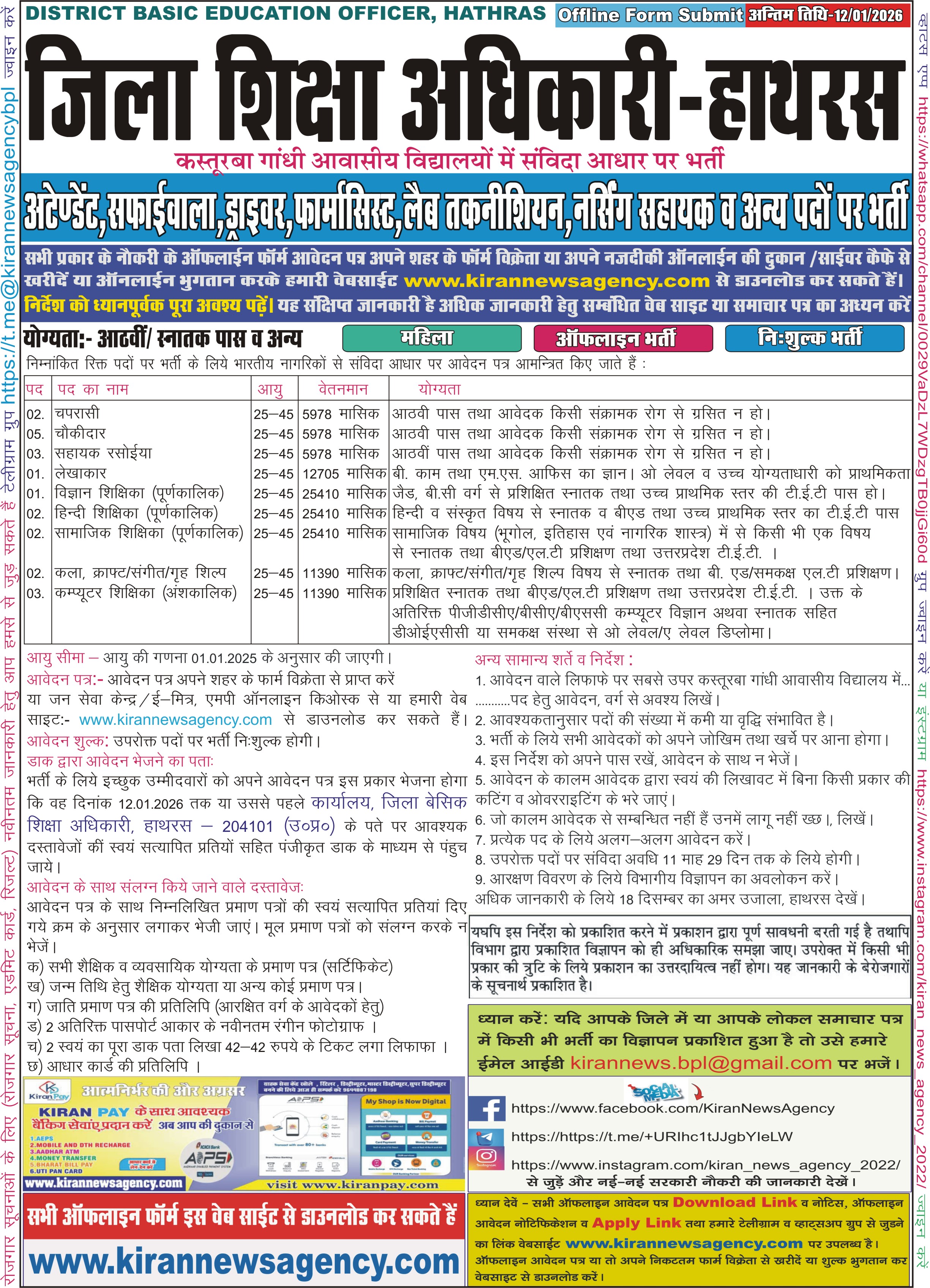 Recruitment :- Peon, Chowkidar, Cook, Teacher