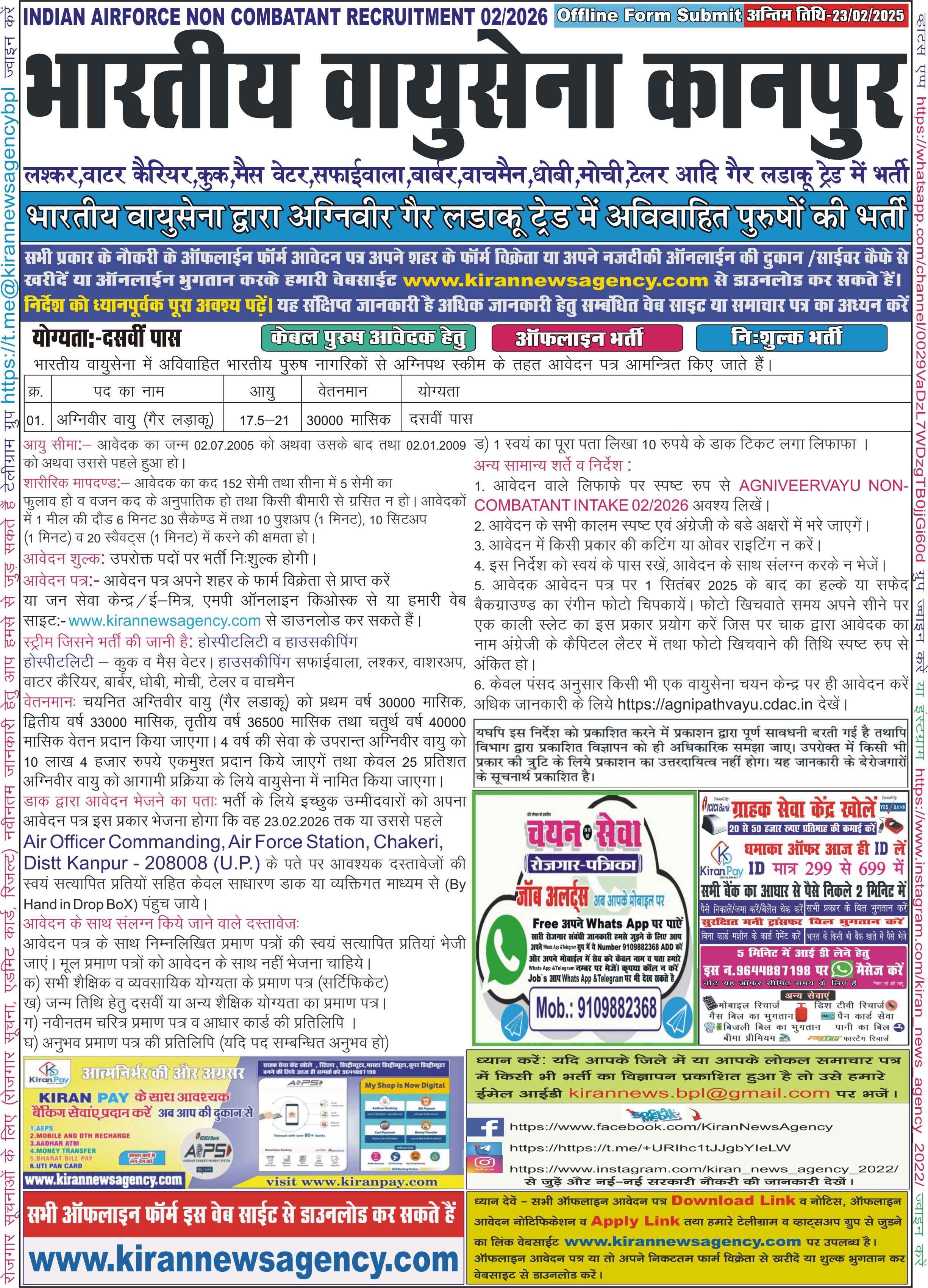 Recruitment :-Agniveer Vayu Non Combatant 02/2026