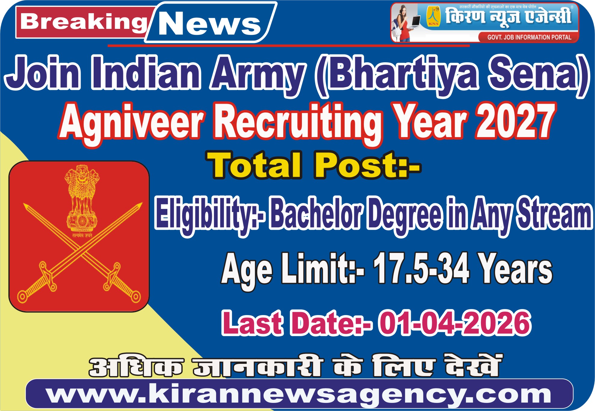 Recruitment :- Indian Army Agniveer Recruiting Year 2027