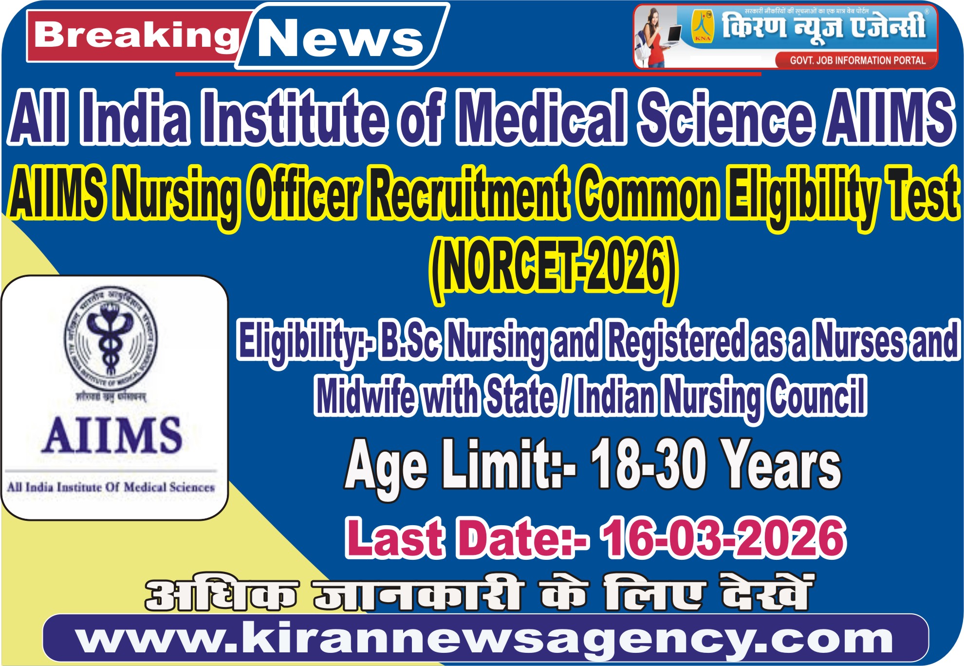 Post Name | AIIMS NORCET Eligibility 2026 |